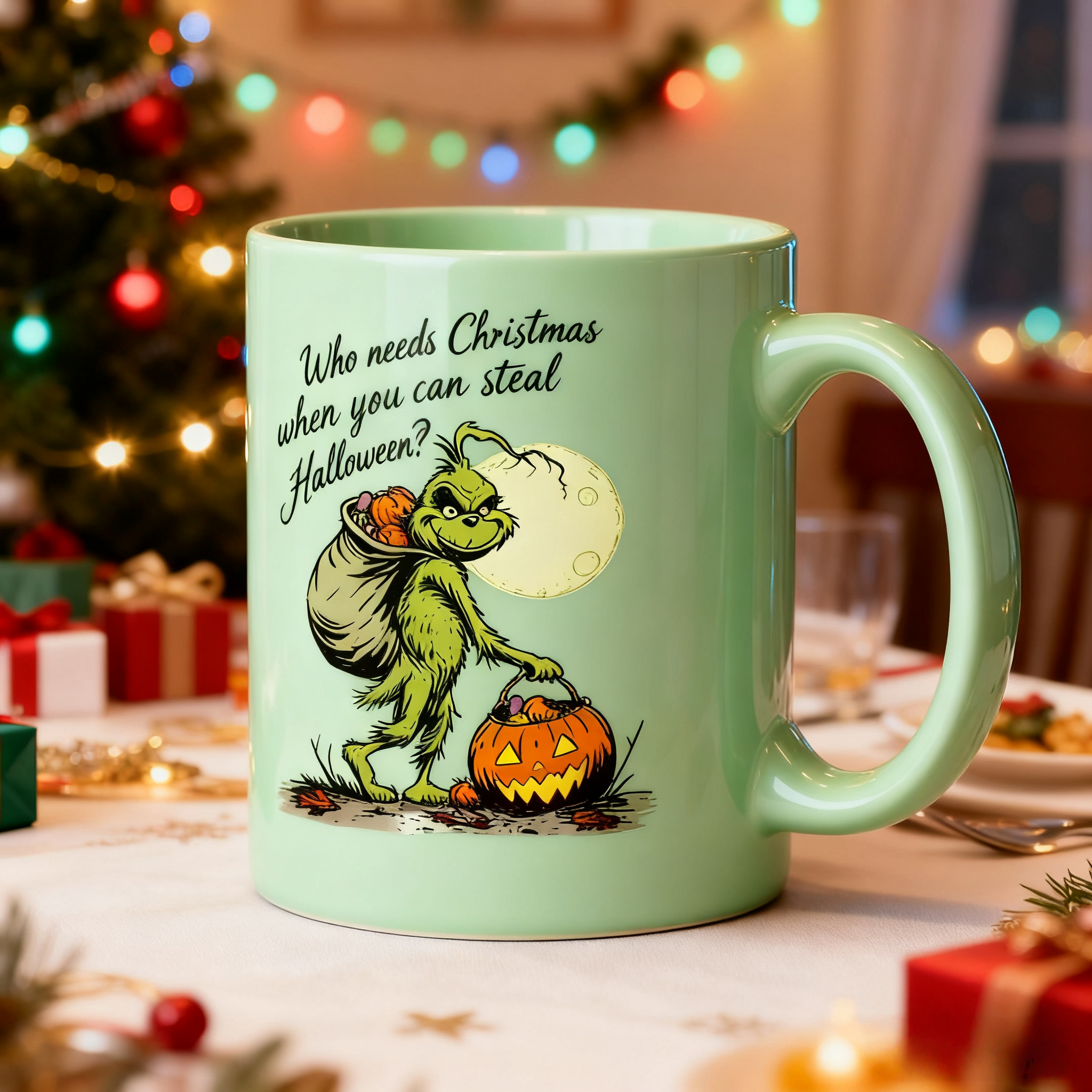 🎄"Who needs Christmas When You Can Steal Halloween" Pure hand-painted mug Mug (Proundme Handmade®)