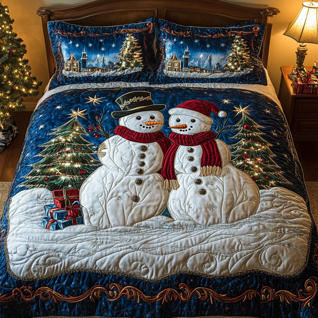 Snowman Delight 3-Piece Quilted Bedding Set NCU0DK10343