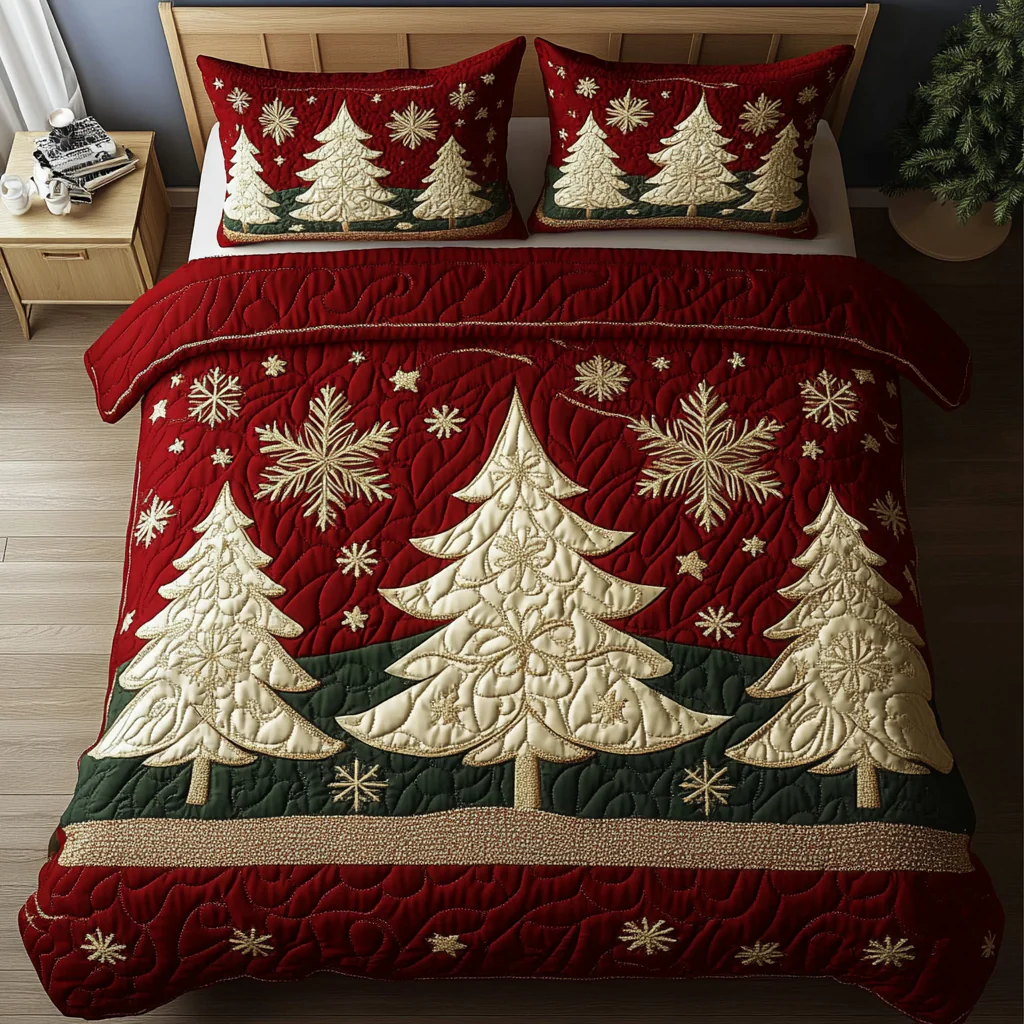 Winter Wonderland Trees 3-Piece Quilted Bedding Set NCU0DK2179