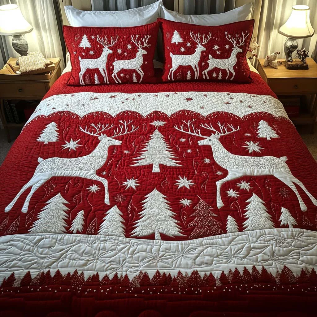 Winter Deer Fantasy 3-Piece Quilted Bedding Set NCU0NT1742