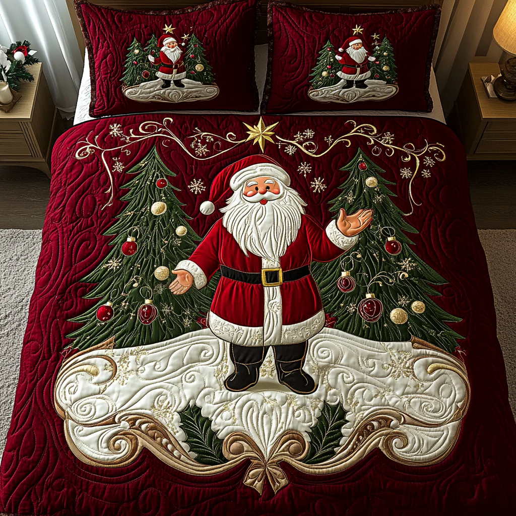 Classic Santa Charm 3-Piece Quilted Bedding Set NCU0TL1778