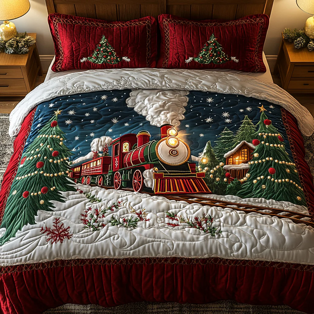Merry Train Adventure 3-Piece Quilted Bedding Set NCU0DK2596