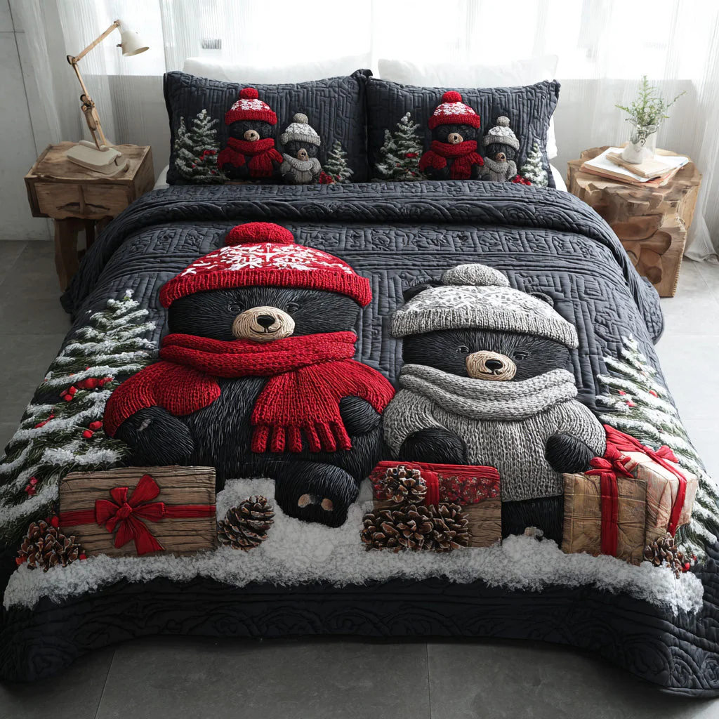 Cozy Winter Bear 3-Piece Quilted Bedding Set NCU0TD1529