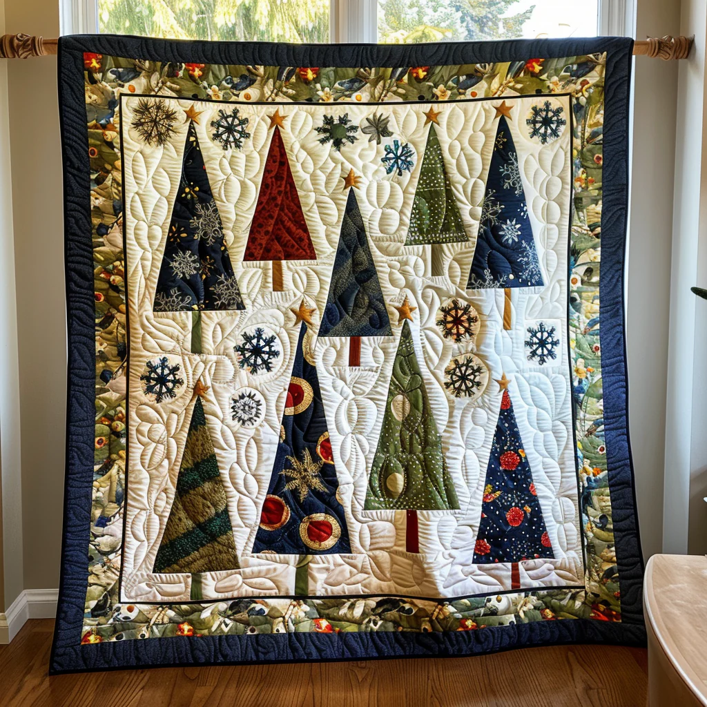 Festive Christmas Tree Quilted Blanket NCU0PD310