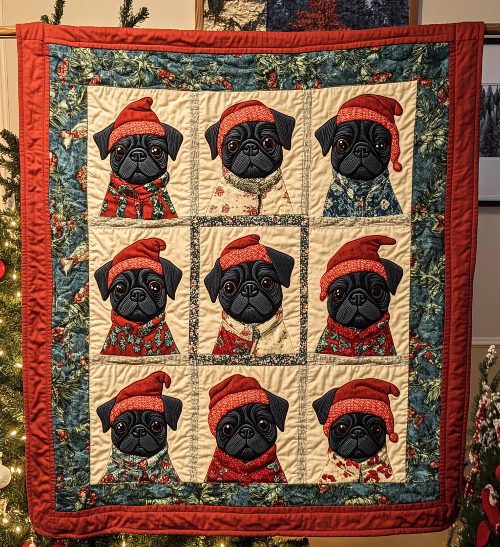 Pug Frosty Fun Quilted Blanket NCU0VL575