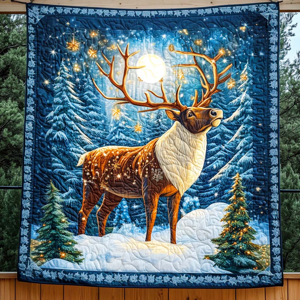 Moonlit Reindeer Magic Quilted Blanket NCU0NT1139
