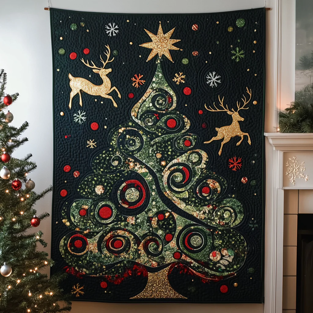 Golden Holiday Tree Quilted Blanket NCU0TL1528