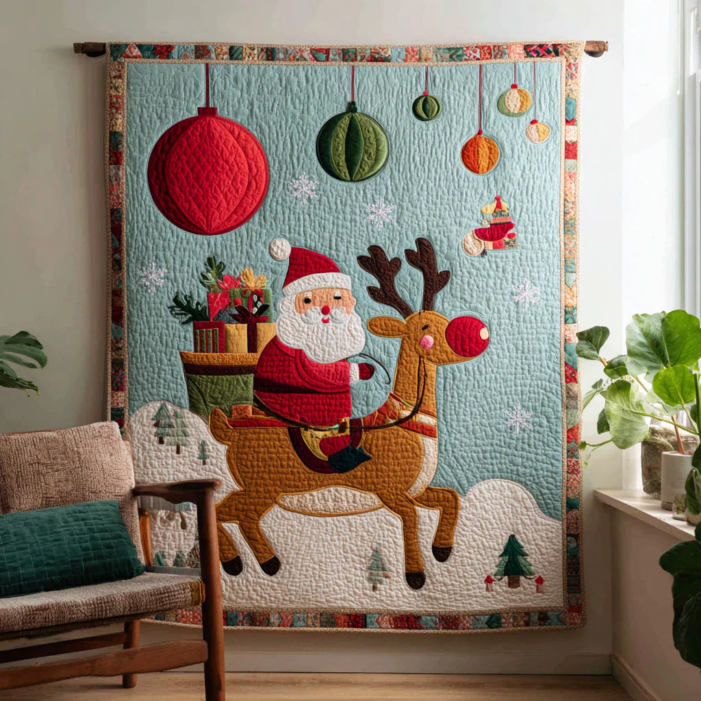 Holly Jolly Santa Claus Quilted Blanket NCU0HH247