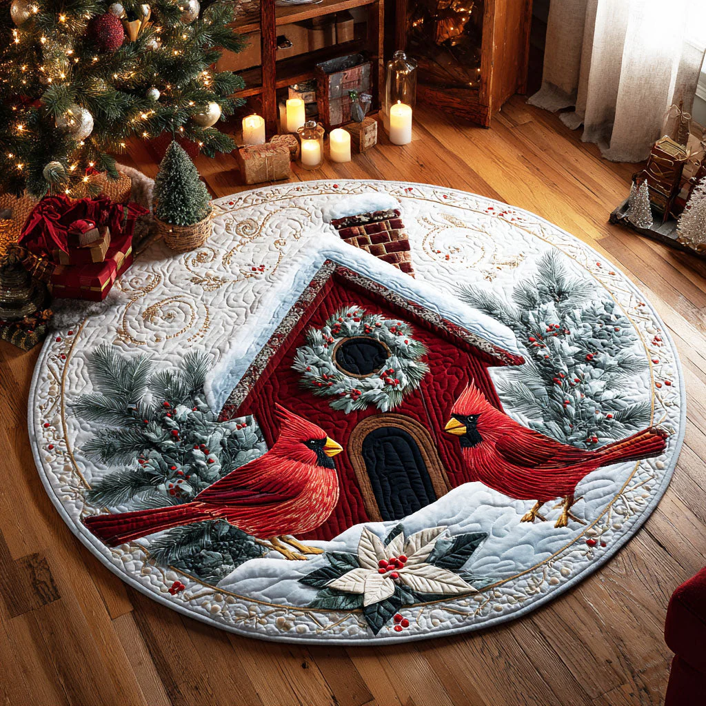 Winter Birdhouse Quilted Round Mat NCU0TV325