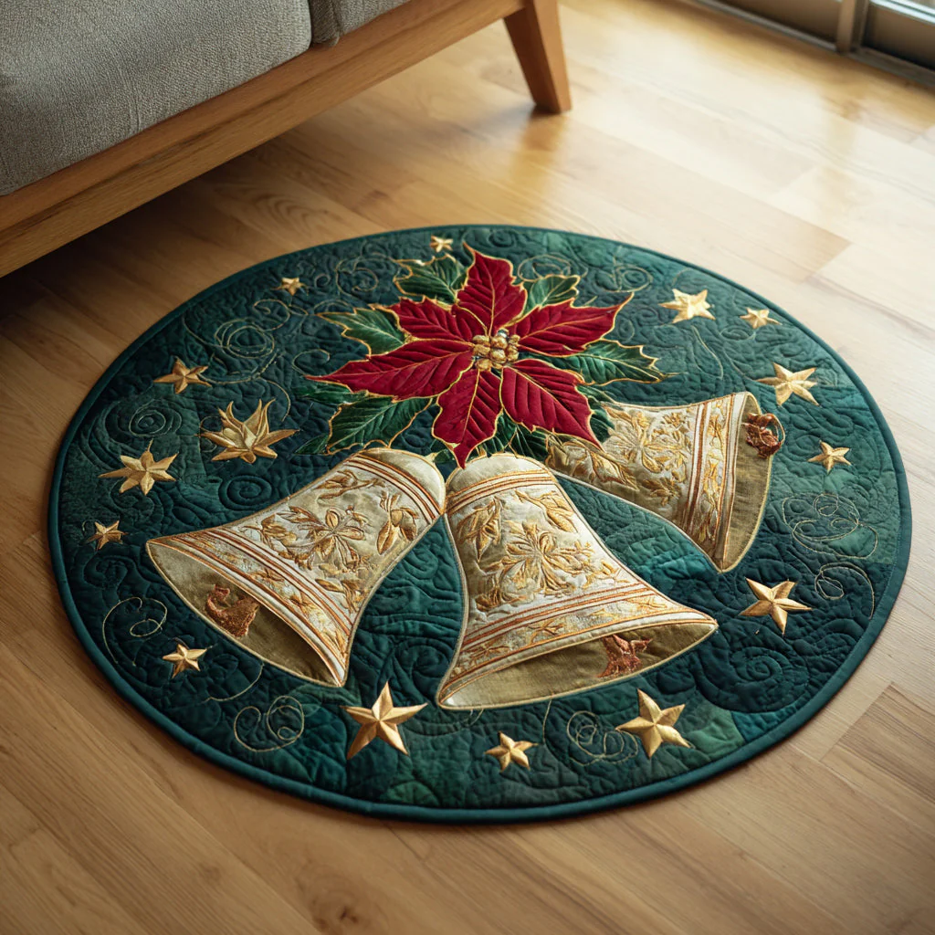 Winter Poinsettia Bells Quilted Round Mat NCU0HH280