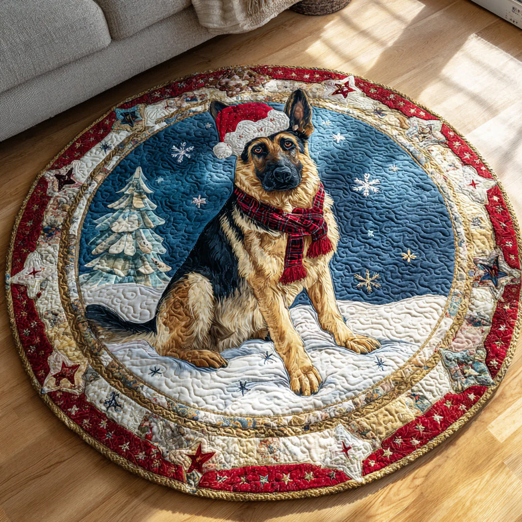 Snowy German Shepherd Quilted Round Mat NCU0HH487