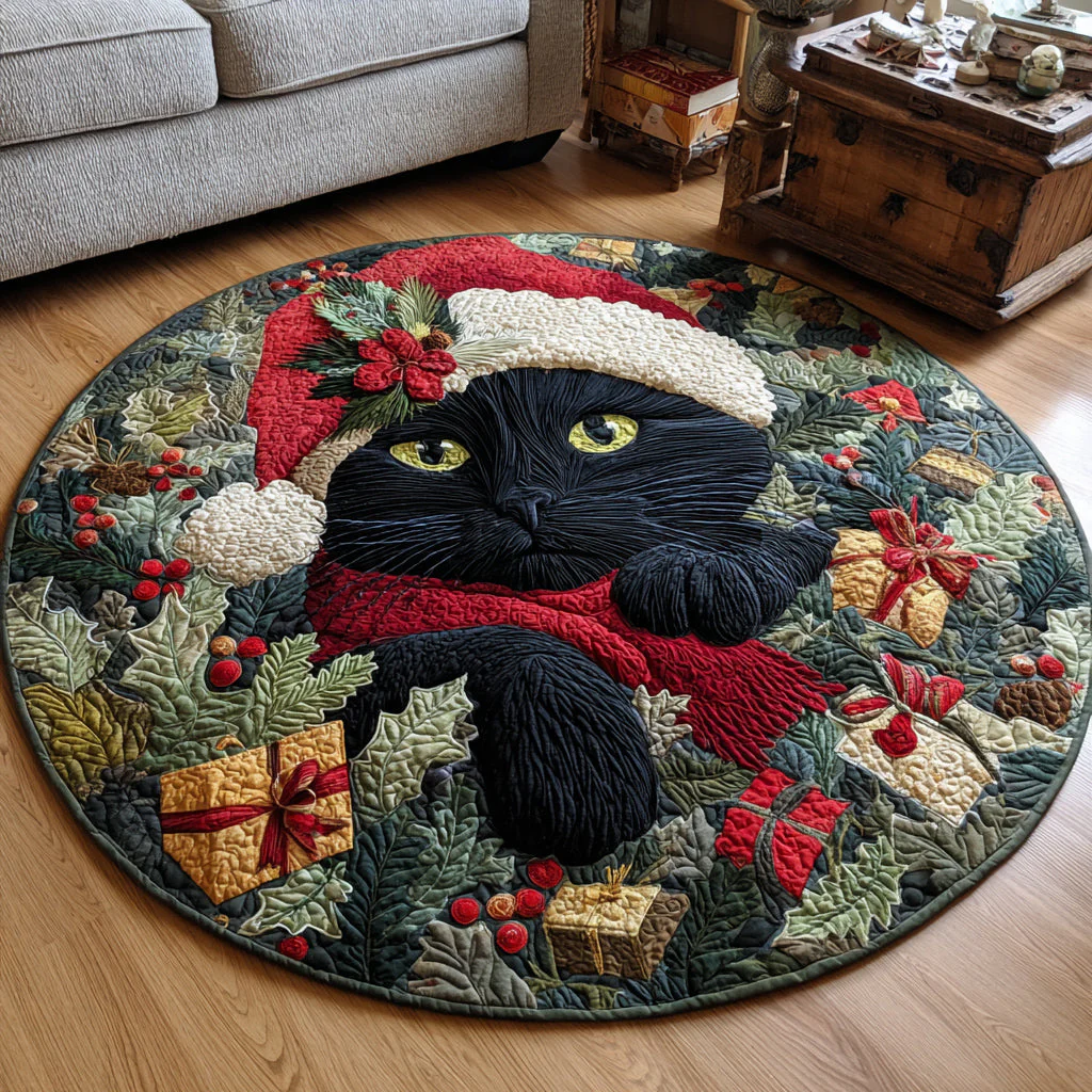 Festive Black Cat Quilted Round Mat NCU0HH635