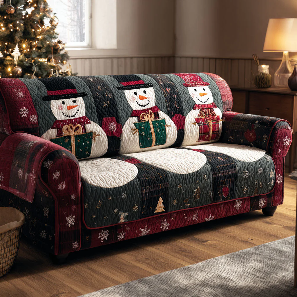 Pine Snowmen Quilted Sofa Cover NCU0TV797