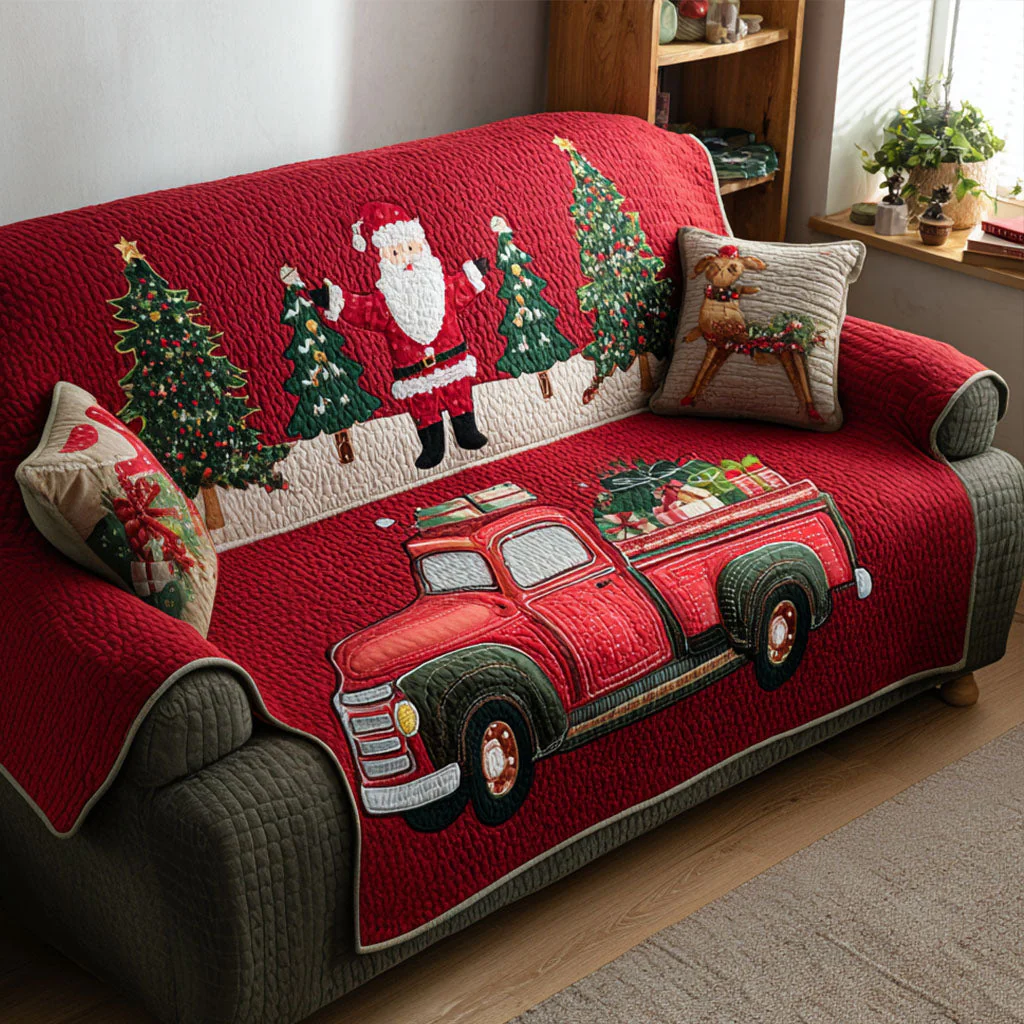 Vintage Christmas Ride Quilted Sofa Cover NCU0PT9682