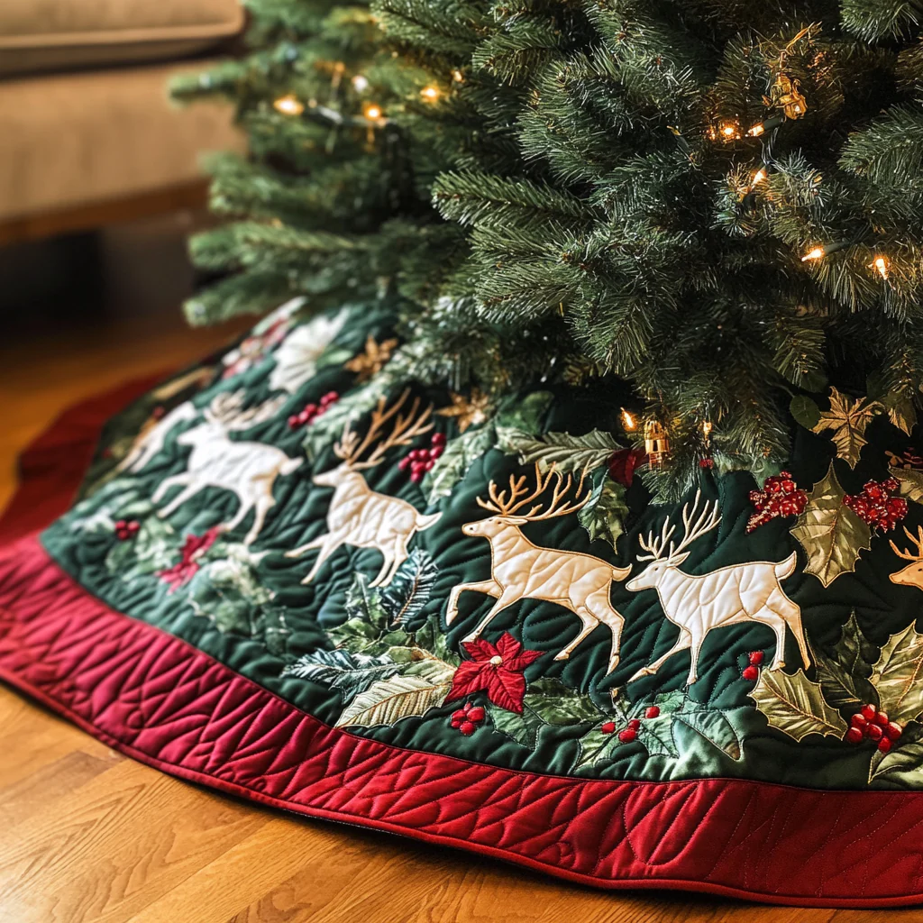 Reindeer Run Quilted Christmas Tree Skirt NCU0VH414