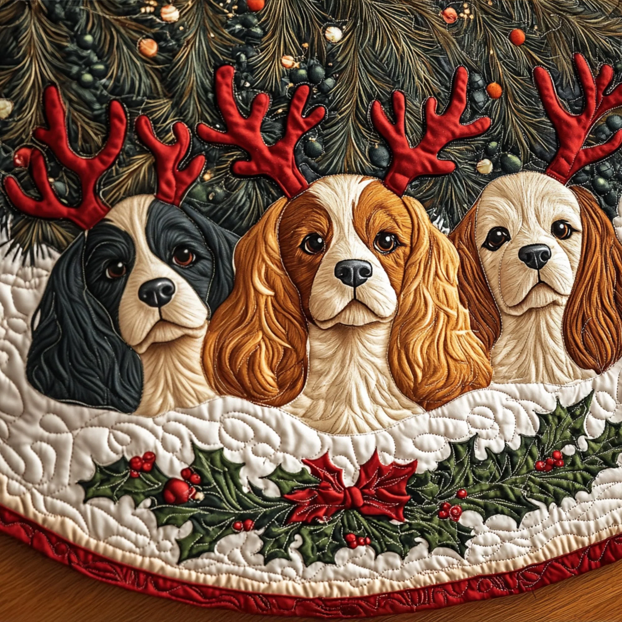 Spaniels Cuddles Quilted Christmas Tree Skirt NCU0PT2078