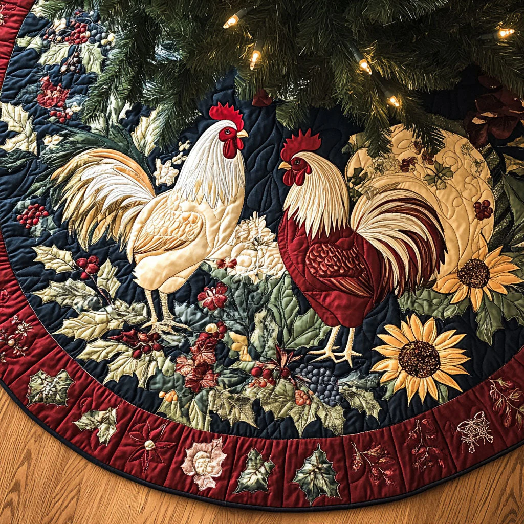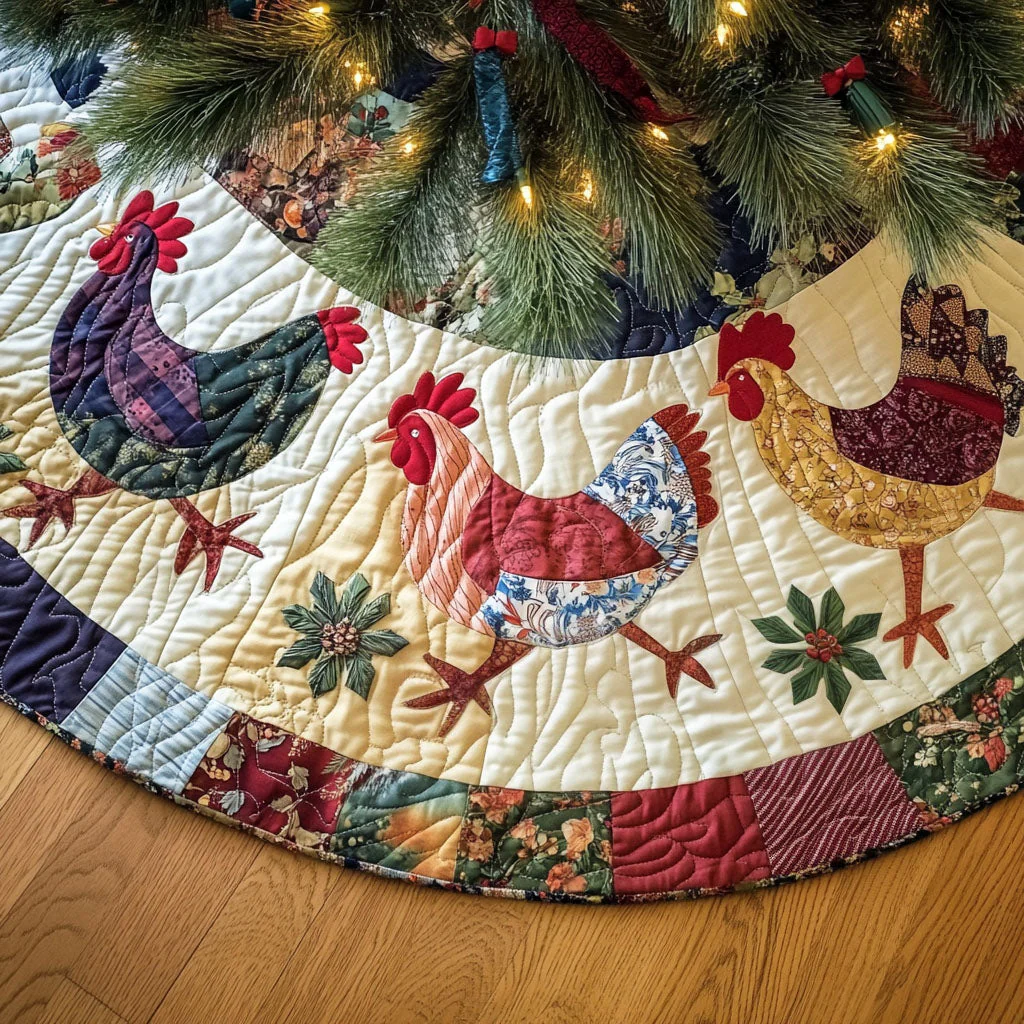 Cheerful Hens Quilted Christmas Tree Skirt NCU0PT2267