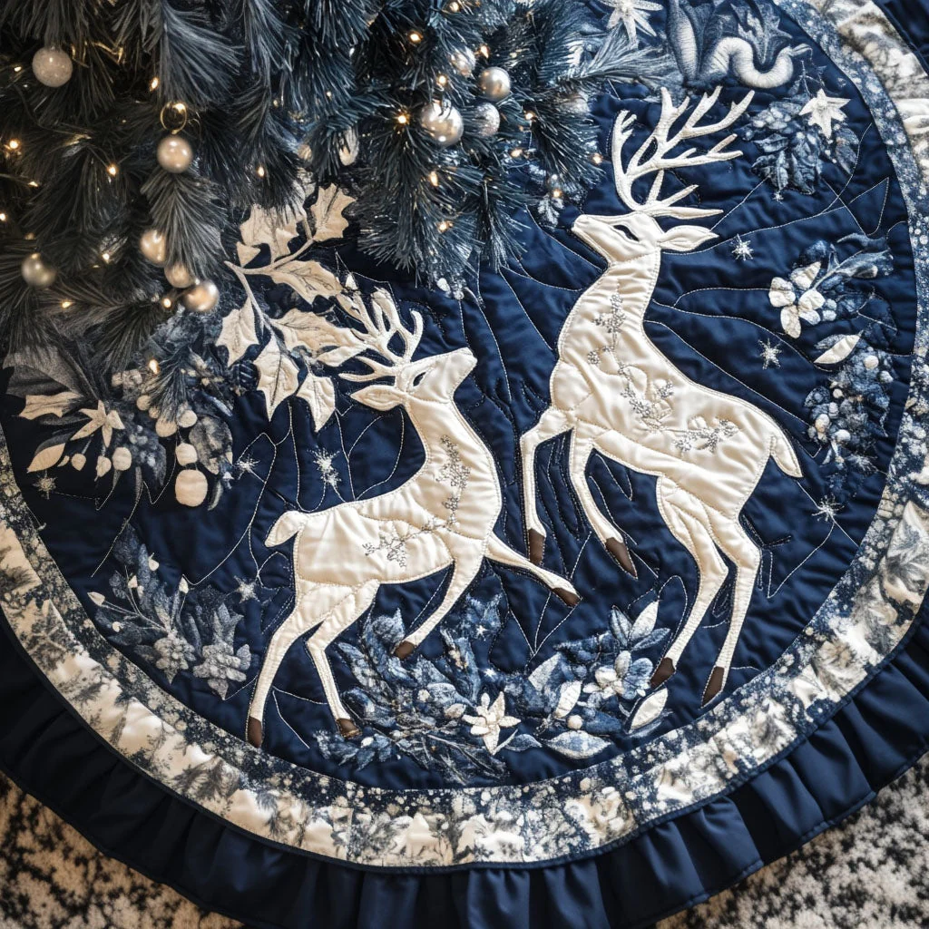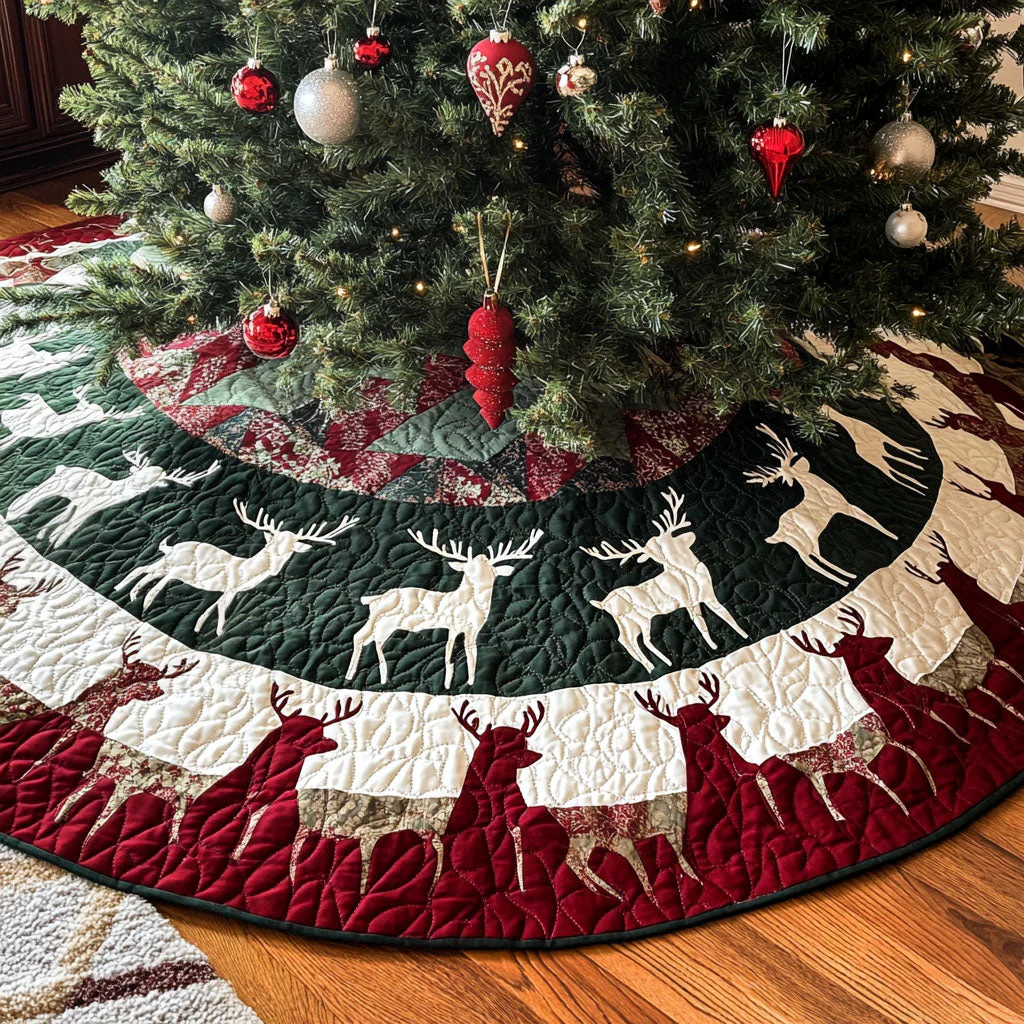 Majestic Reindeer Gala Quilted Christmas Tree Skirt NCU0PT2379