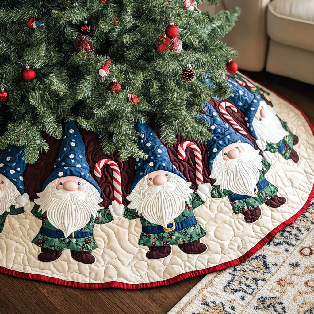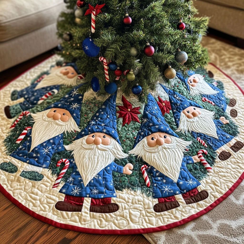 Gnome Cozy Christmas Quilted Christmas Tree Skirt NCU0PT1841