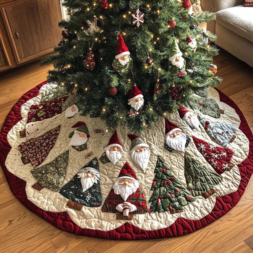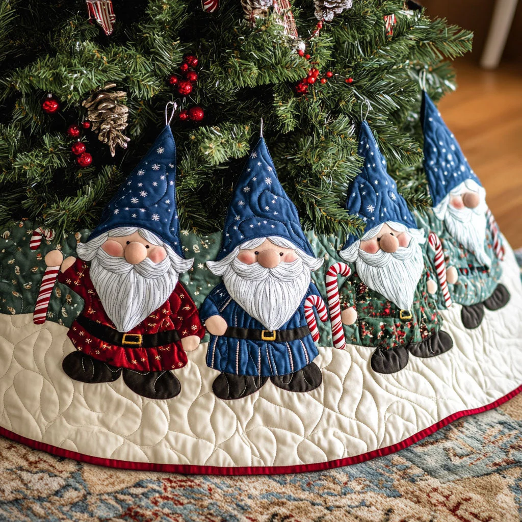 Gnome Noel Charm Quilted Christmas Tree Skirt NCU0PT1845