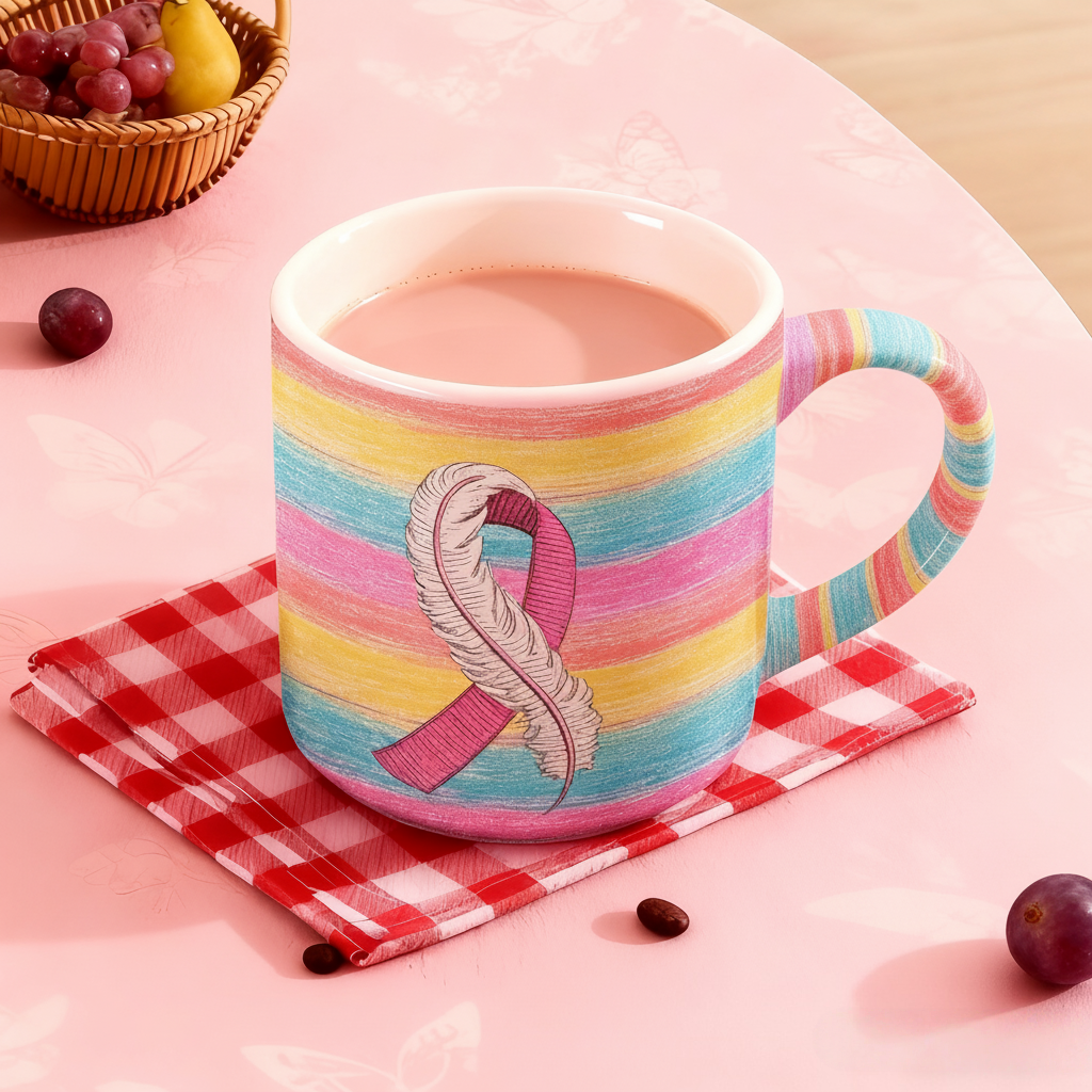 🩷 Our hand-painted Breast Cancer Awareness Mug isn’t just drinkware — it’s a daily symbol of courage, compassion, and solidarity. With every sip, you’re showing the world: No one fights alone.