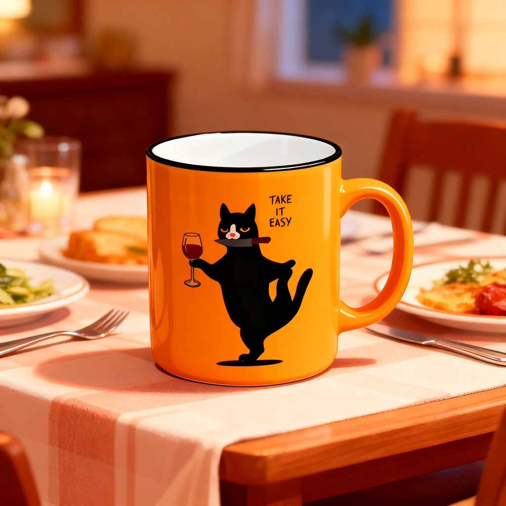 🐈⬛"Take it eazy" Cute cat pure hand-painted mug (Proundme Handmade®)