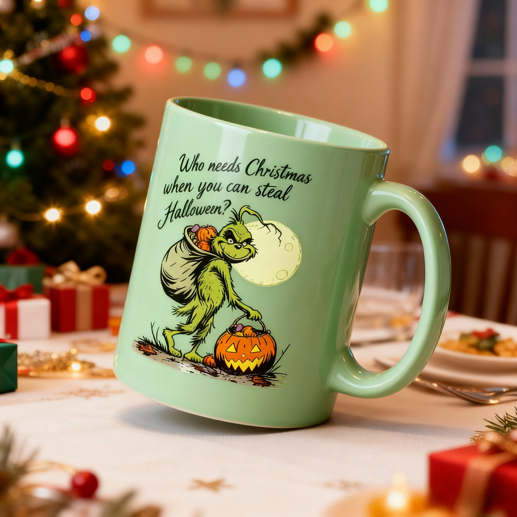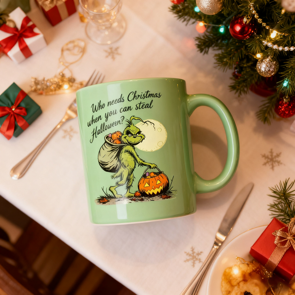 🎄"Who needs Christmas When You Can Steal Halloween" Pure hand-painted mug Mug (Proundme Handmade®)
