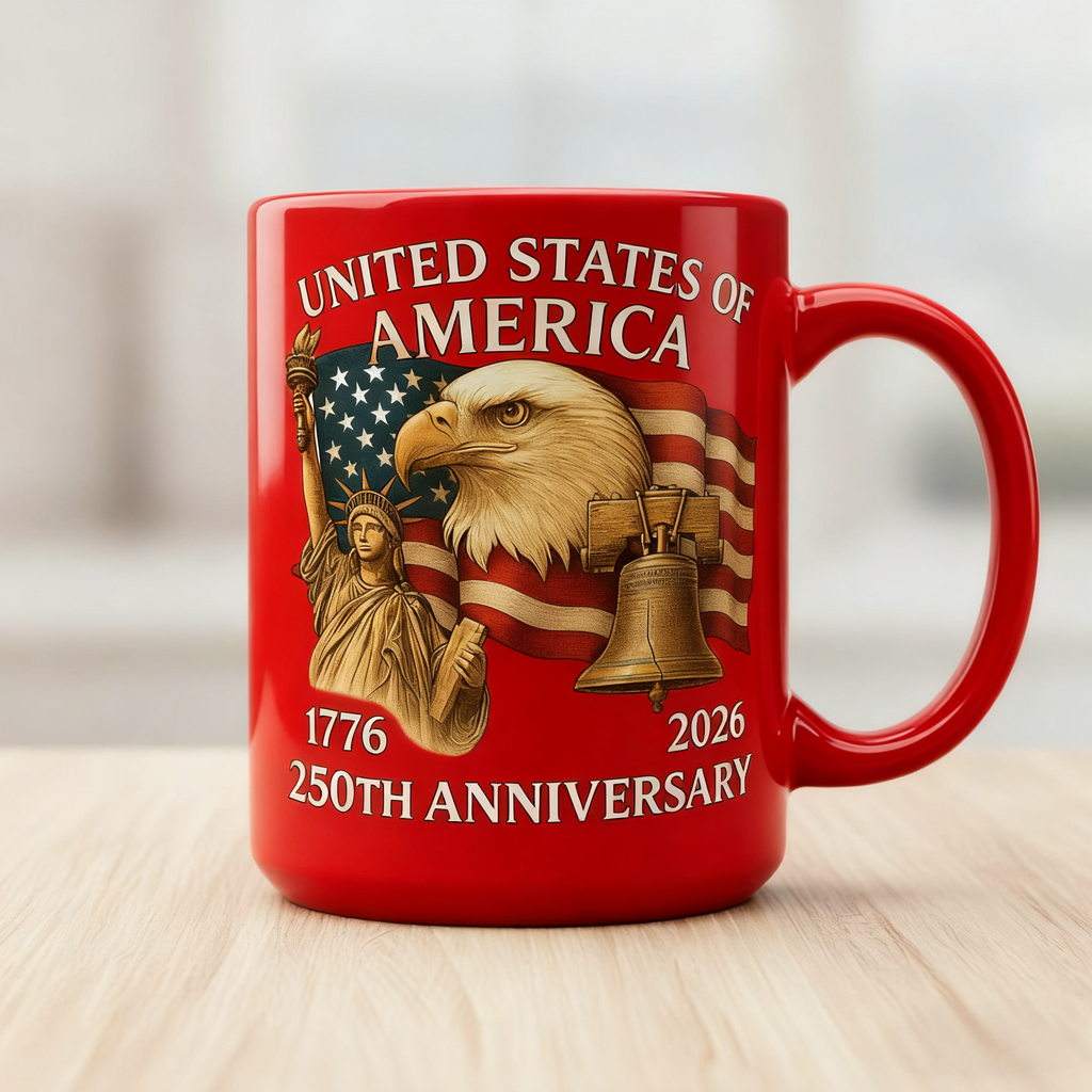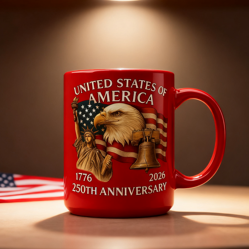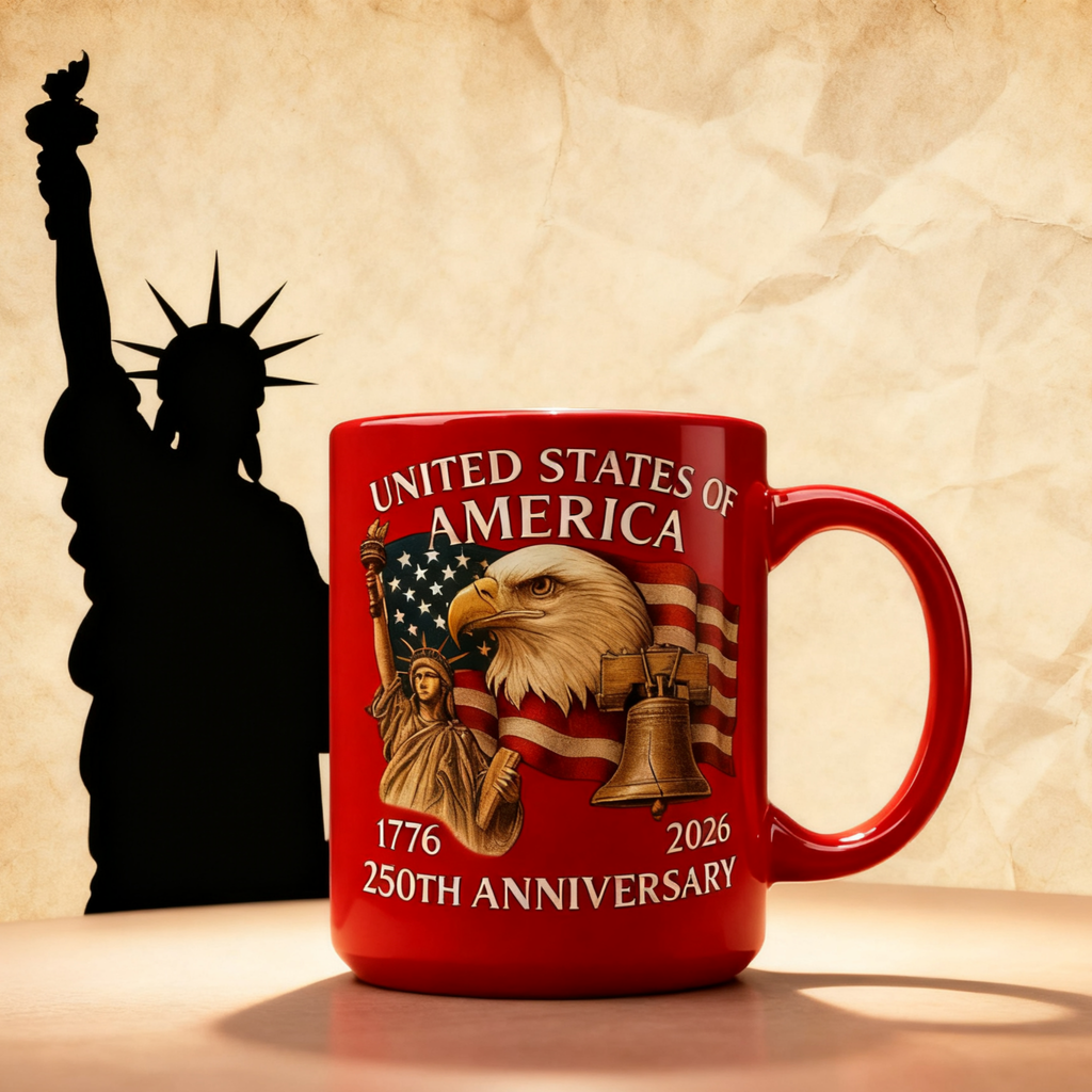 Commemorate the 250th anniversary of American independence with every cup of coffee or tea. Featuring iconic symbols like the Statue of Liberty, the American flag, the White House, and the Brooklyn Bridge, this hand-painted mug is a tribute to freedom, patriotism, and timeless American spirit. 🇺🇸
