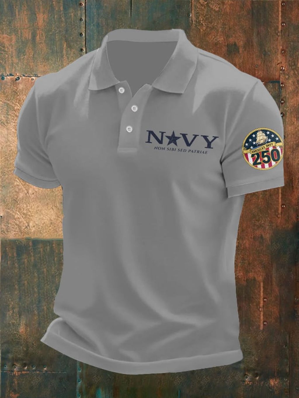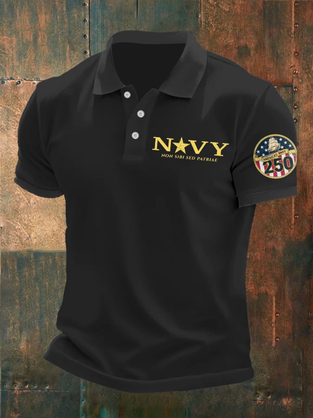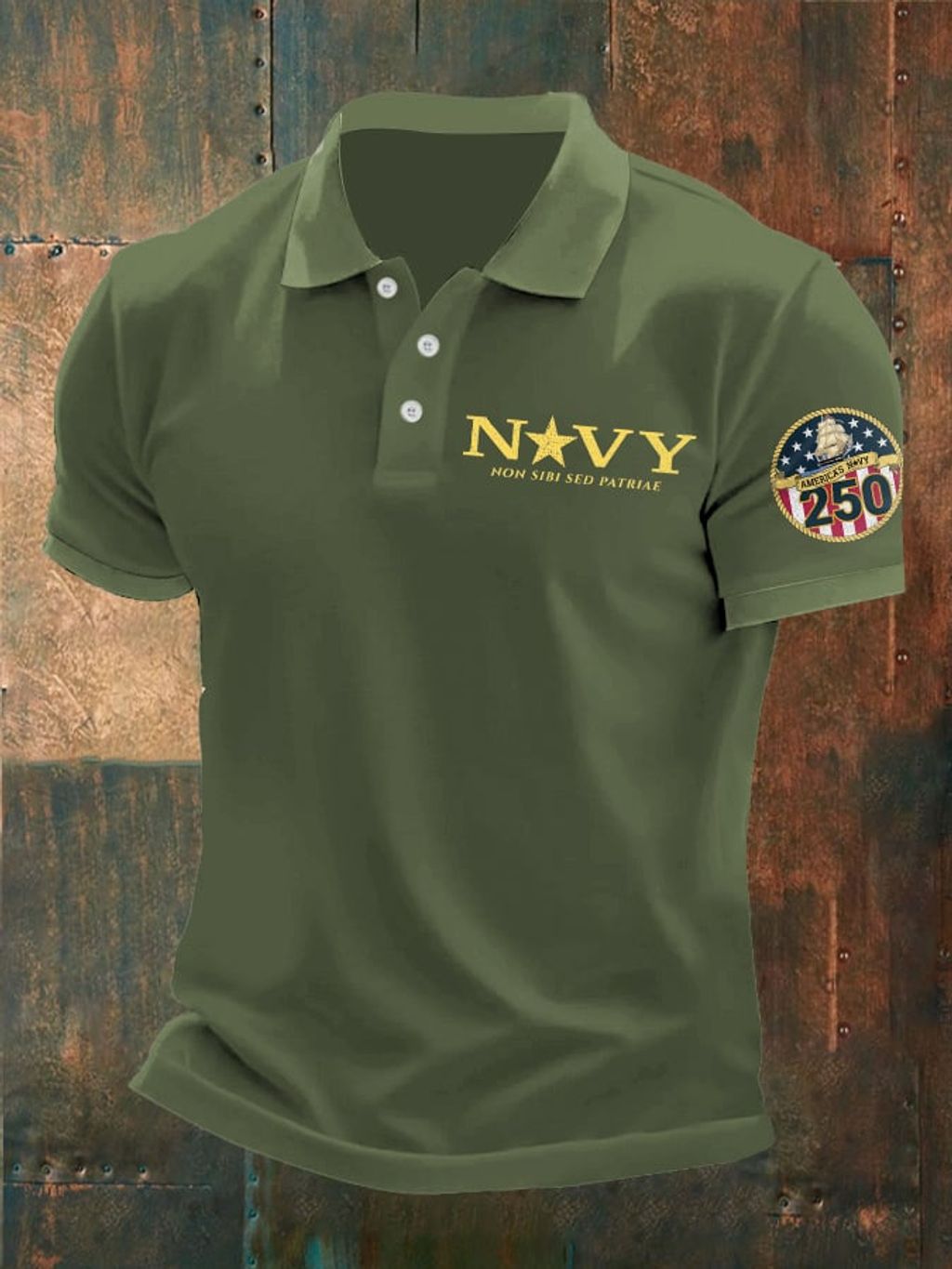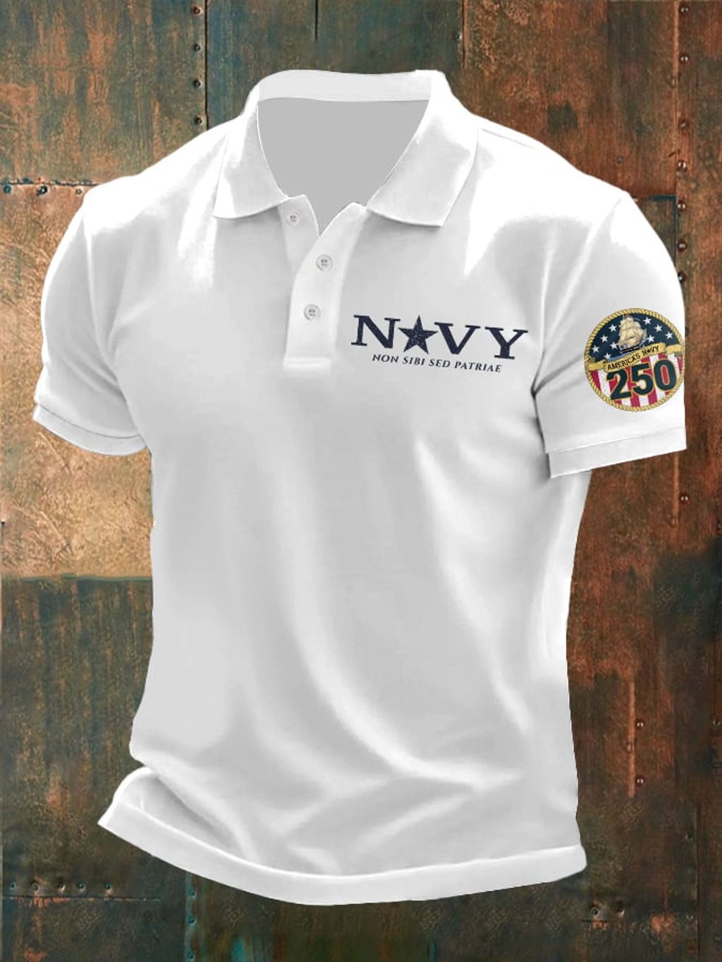 Man's Vintage America's Navy 250th Anniversary Non Sibi Sed Patriae Printed Polo Shirt