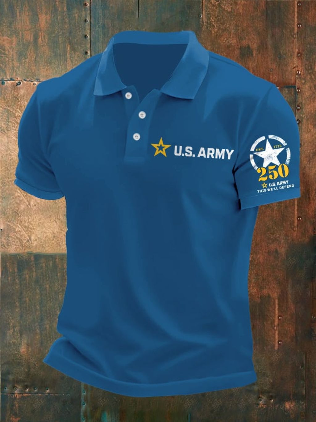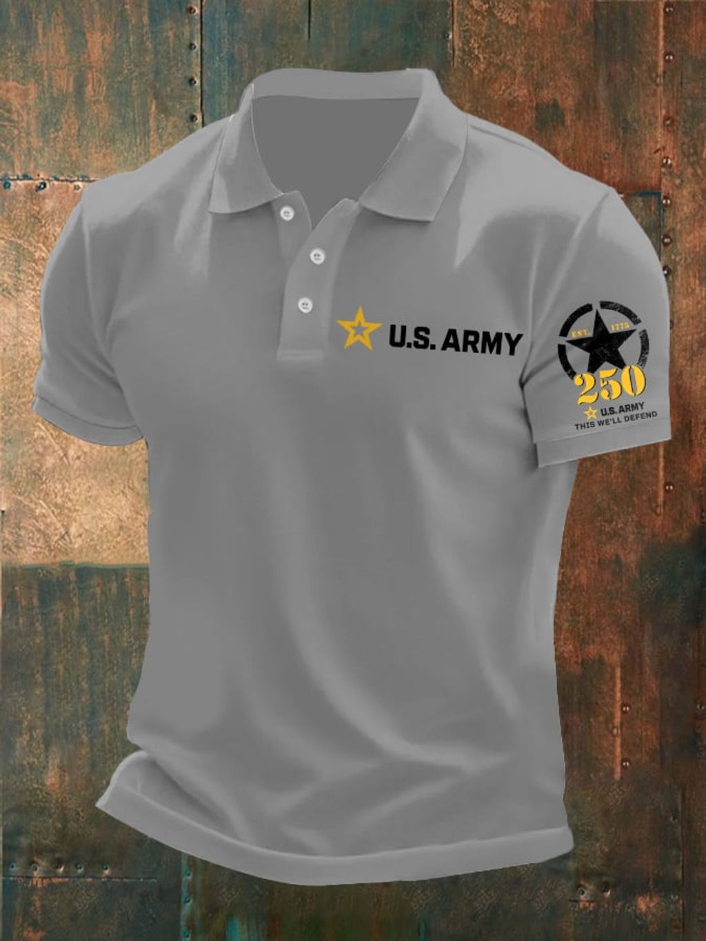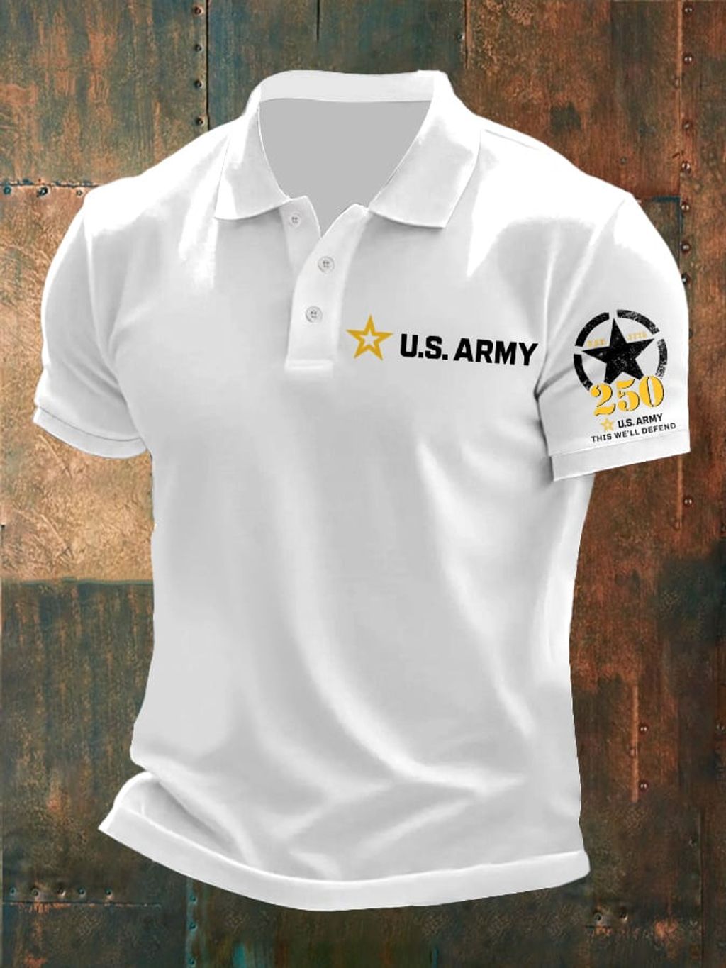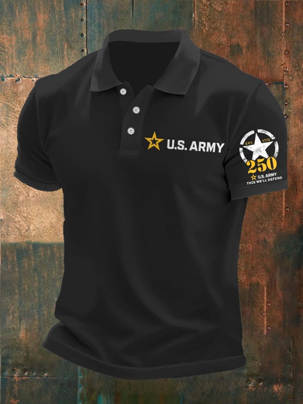 Man's Vintage U.S. Army 250th Anniversary This We'll Defend Est.1775 Printed Polo Shirt