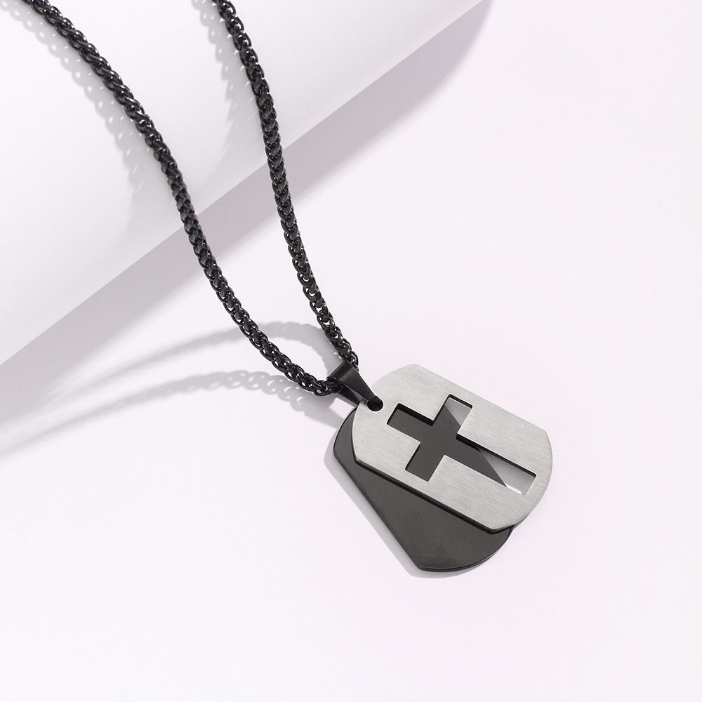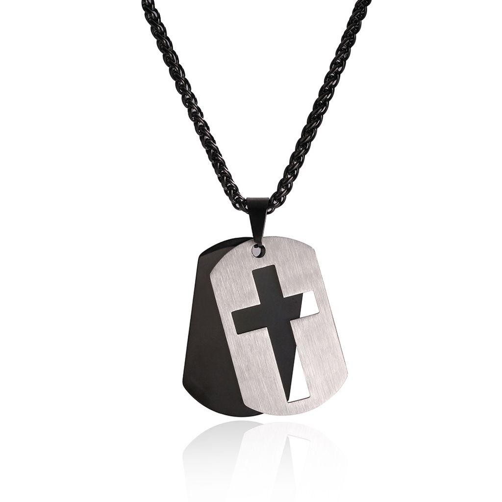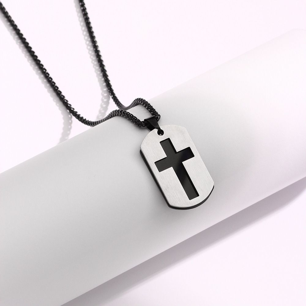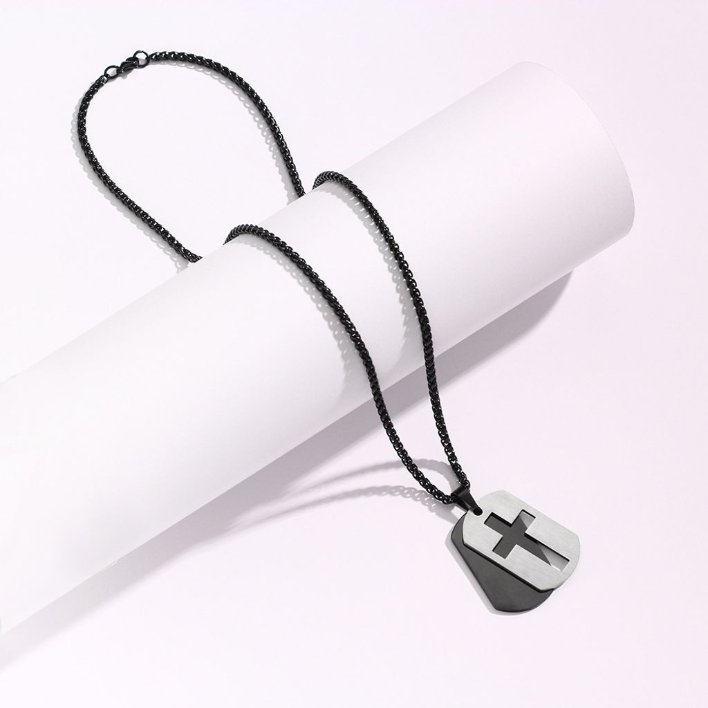 Men's Black Military Plaque Hollow Cross Pendant Necklace