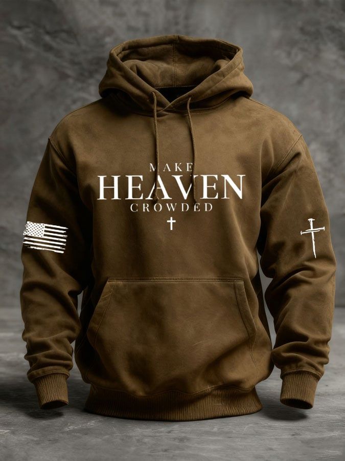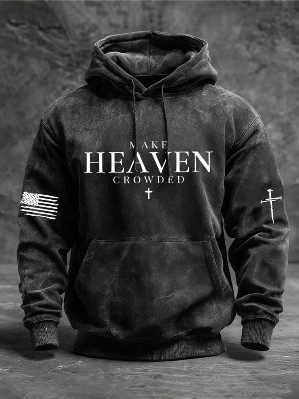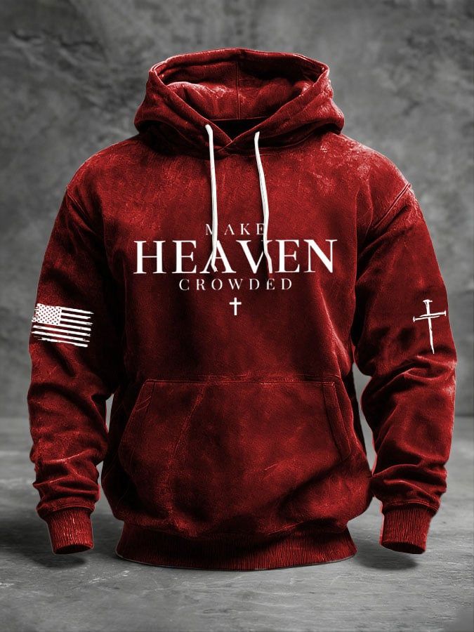 Men's Casual Faith Cross Printed Long Sleeve Hooded Sweatshirt