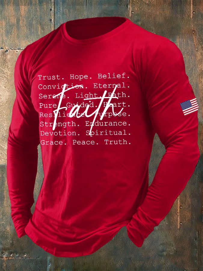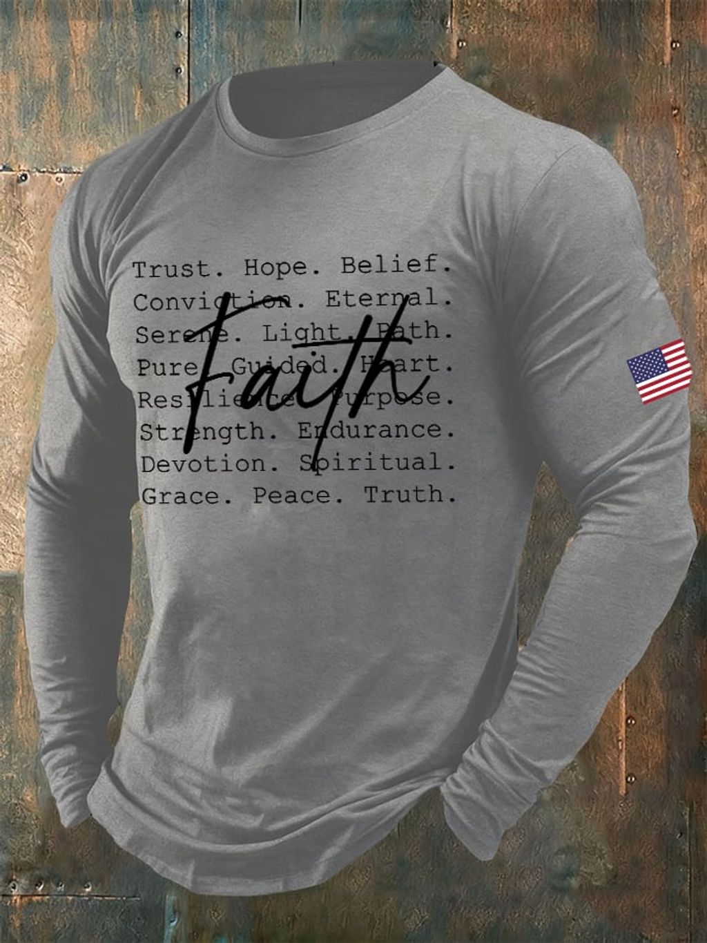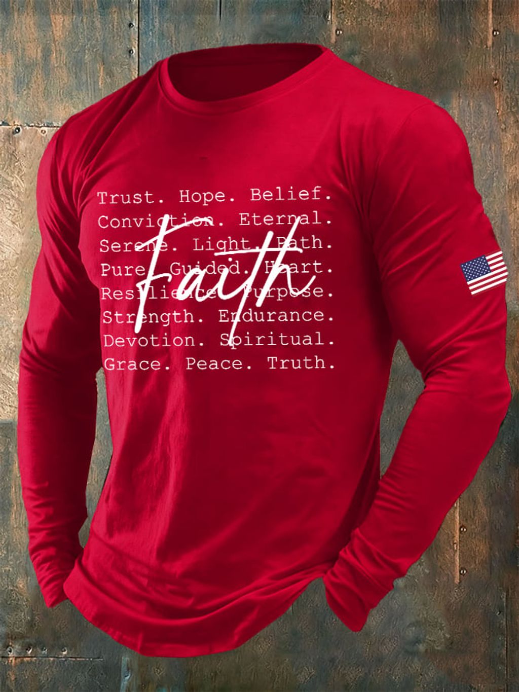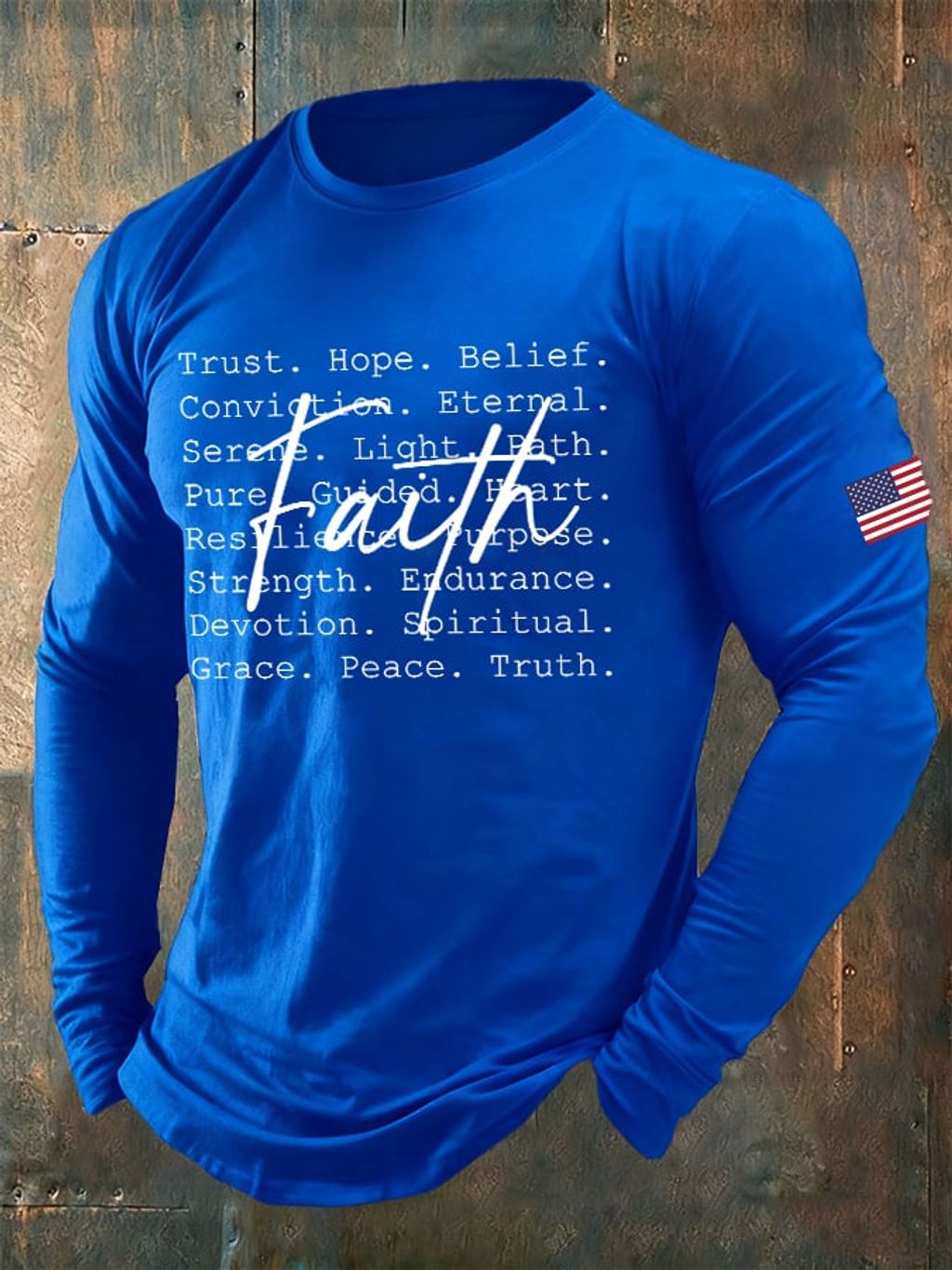 Men's Casual Faith Print Long-Sleeved T-Shirt