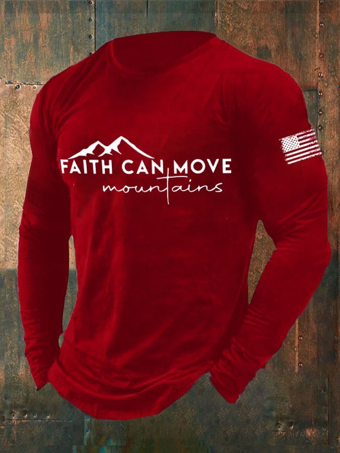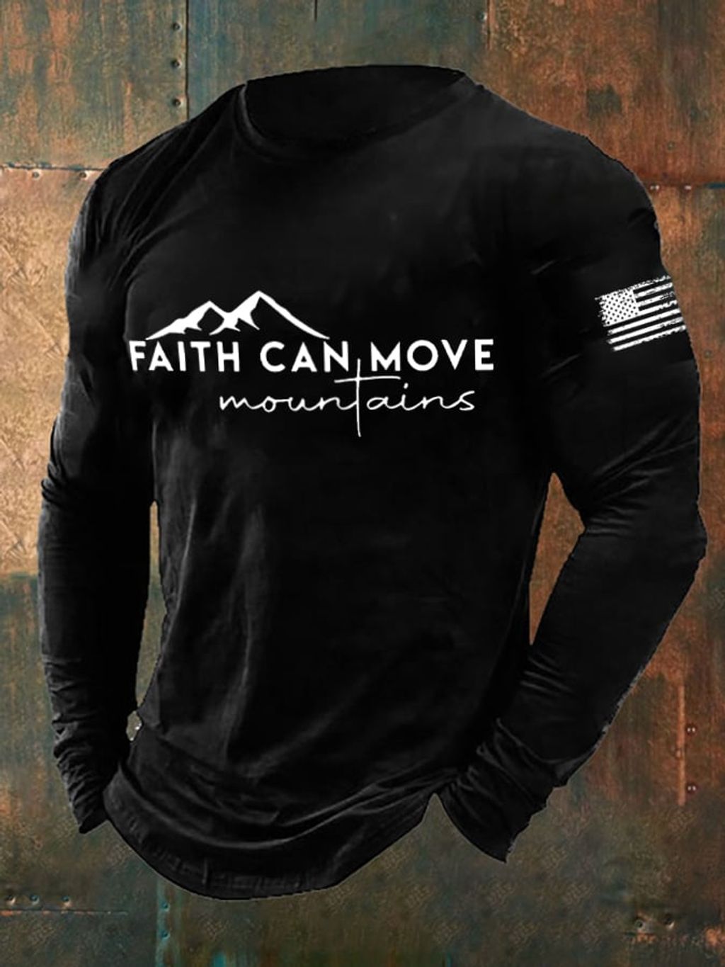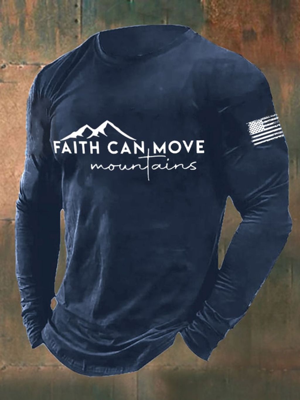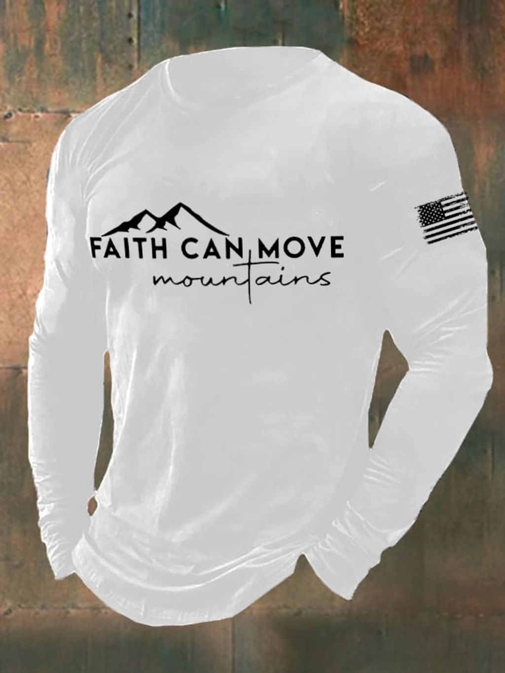 Men's Faith Can Move Mountains Printed Round Neck T-Shirt