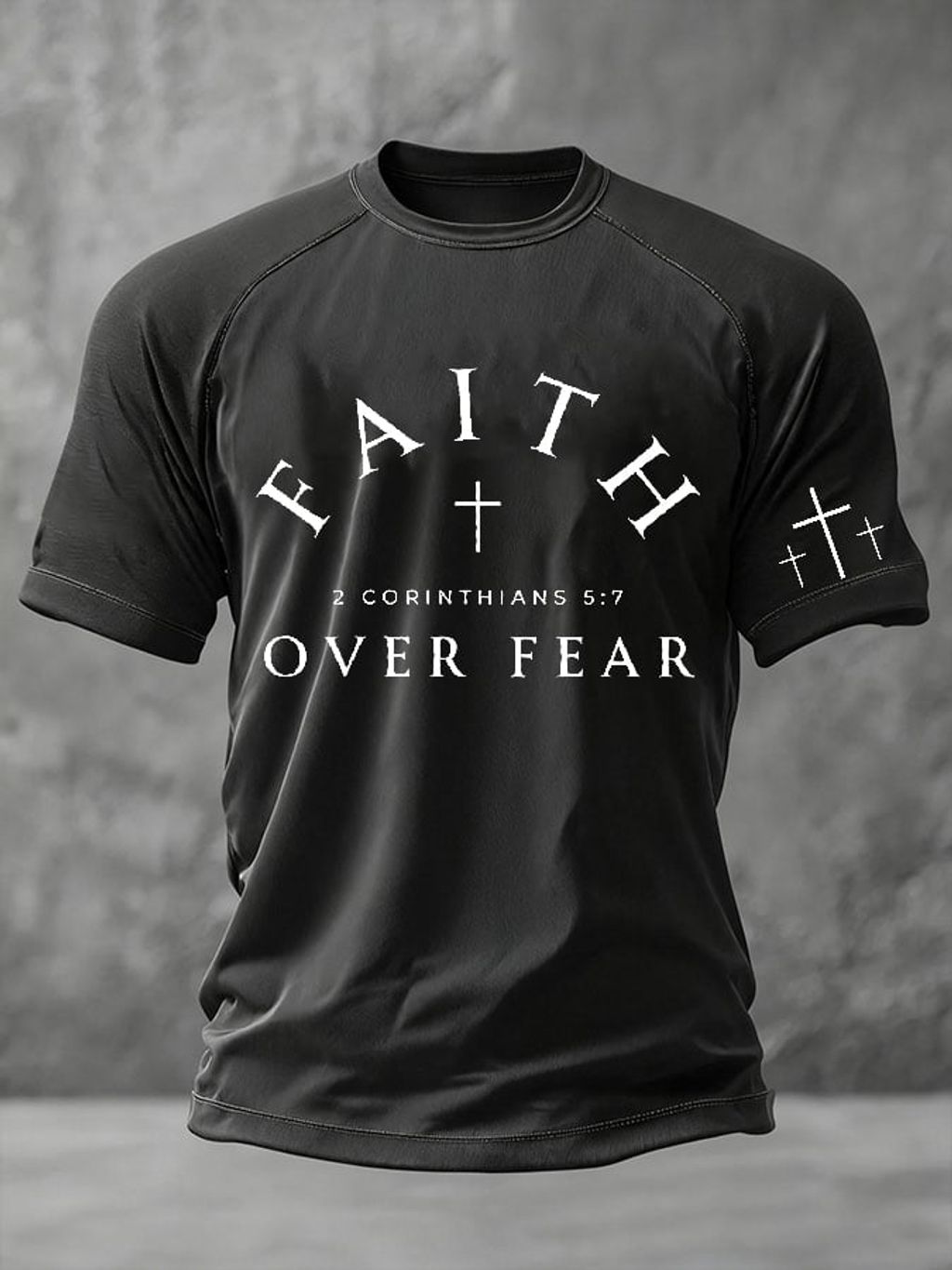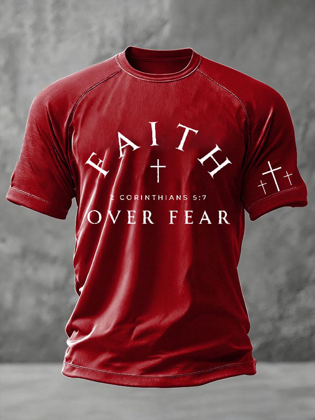 Men's Faith “Faith Over Fear” Printed Casual T-Shirt