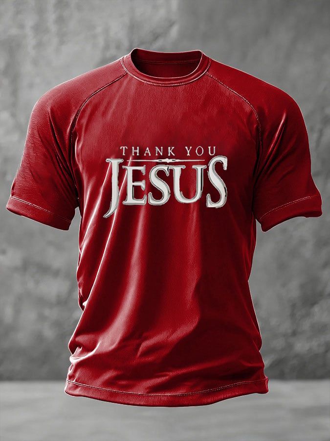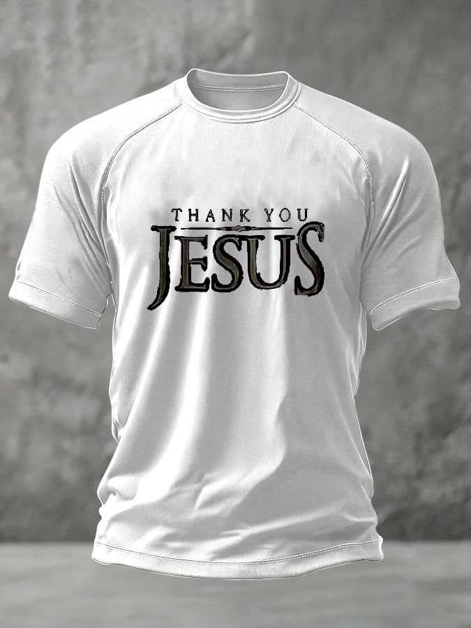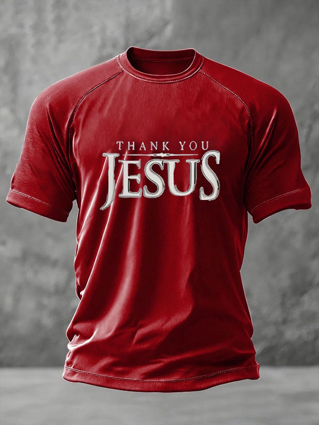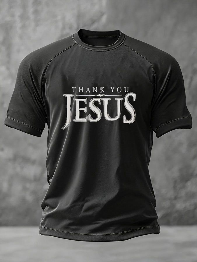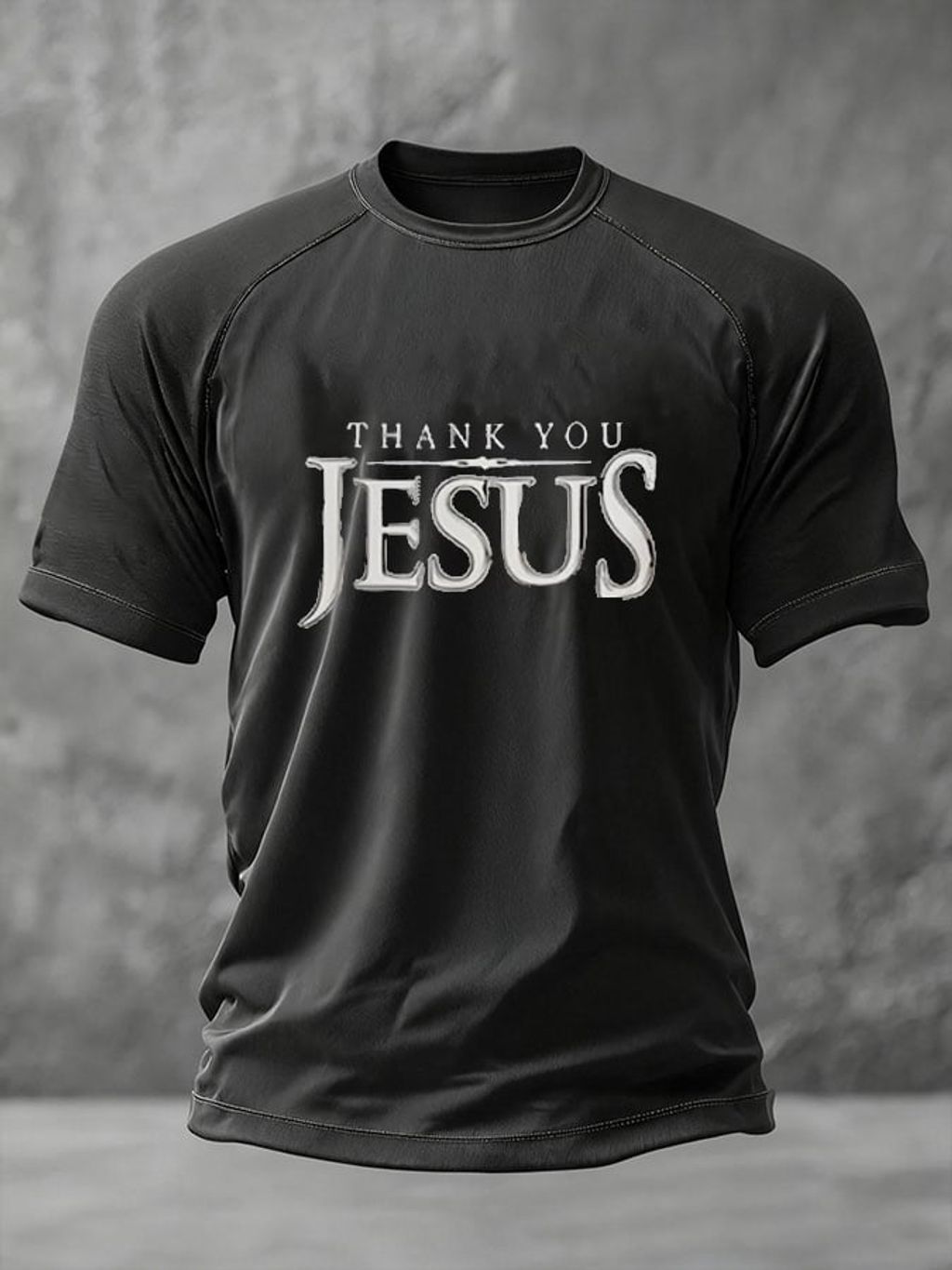 Men's Faith “thank you jesus” Printed Casual T-Shirt
