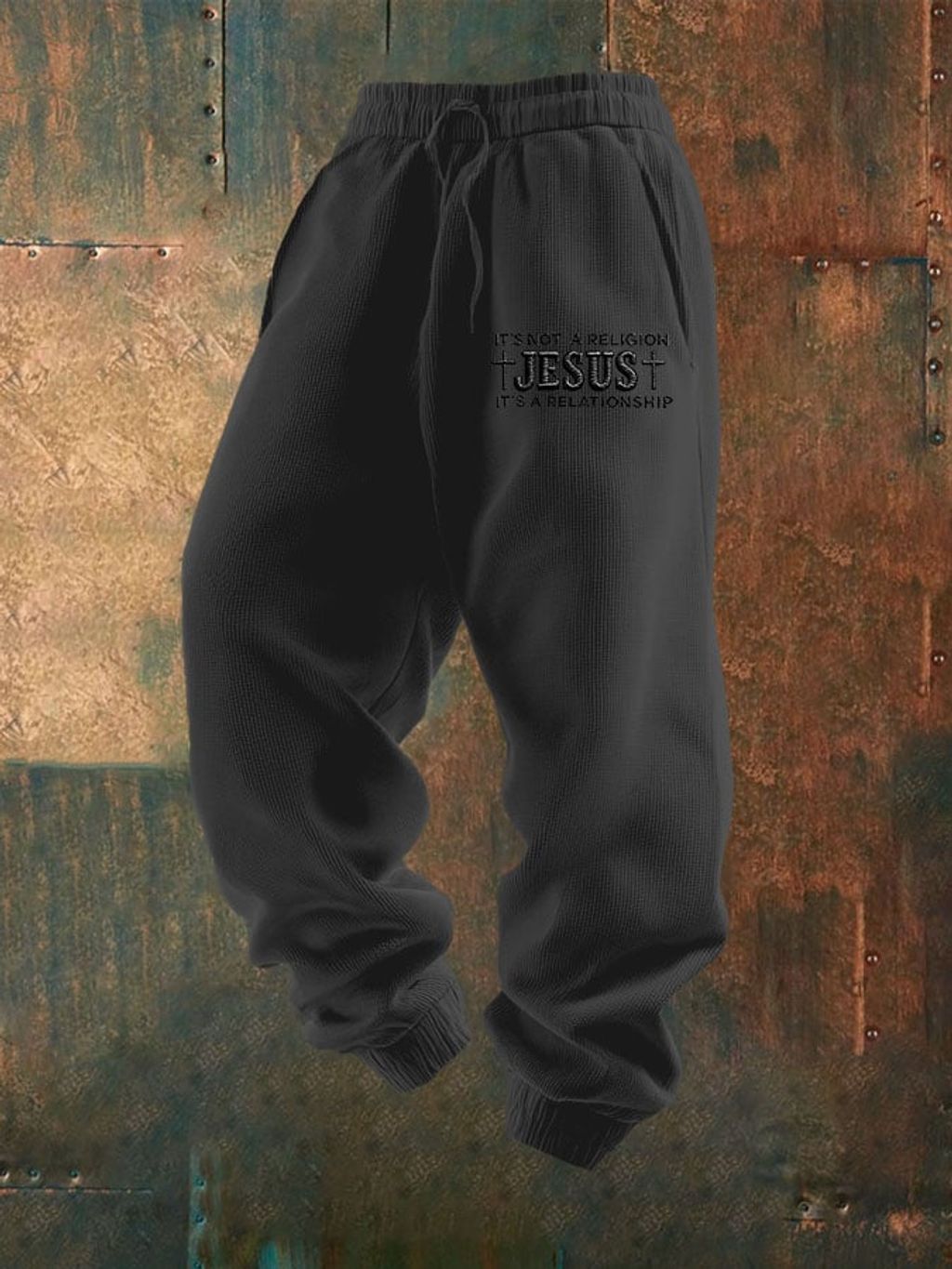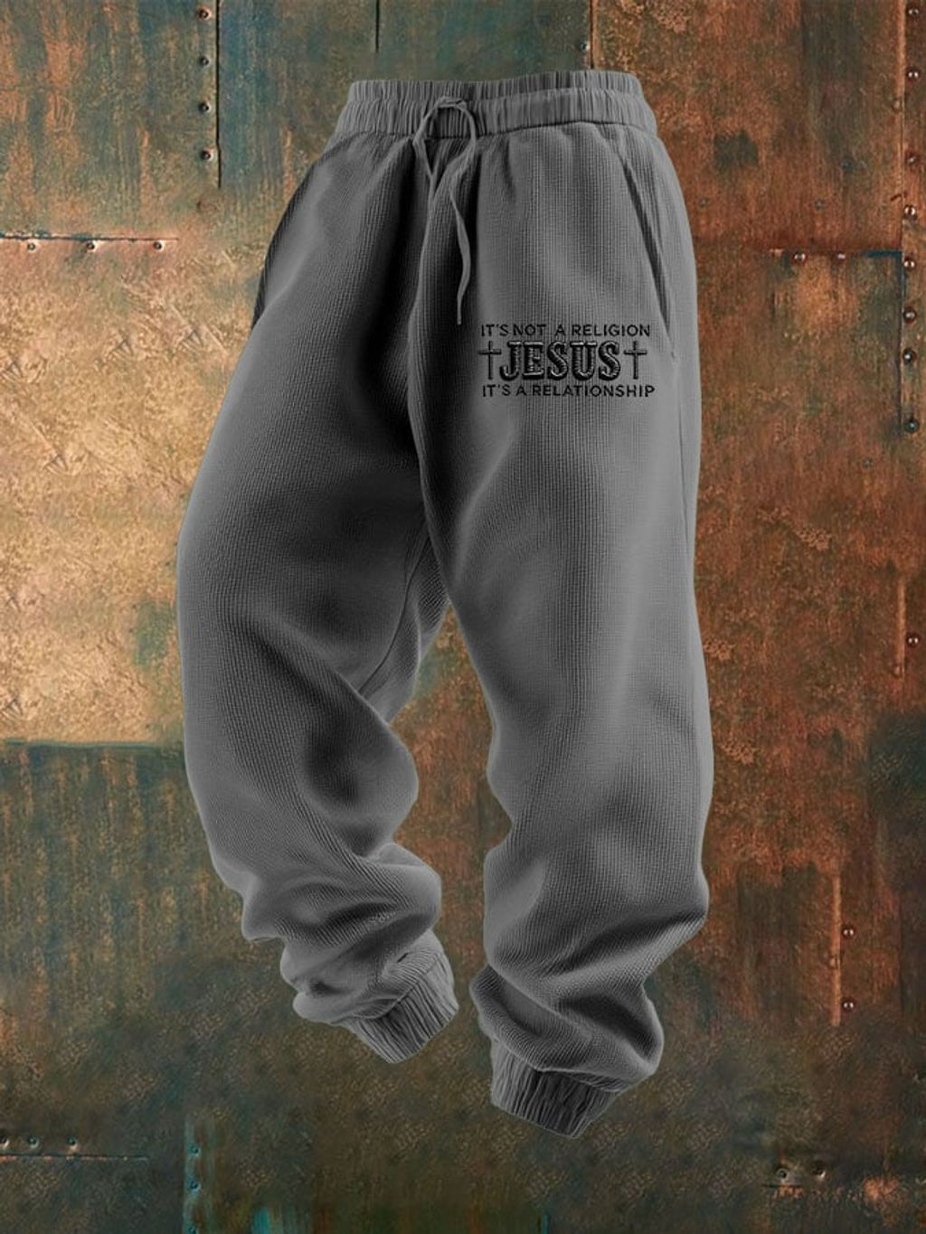 Men's It'S Not A Religion Jesus It'S A Relationship Print Textured Casual Loose Sweatpants