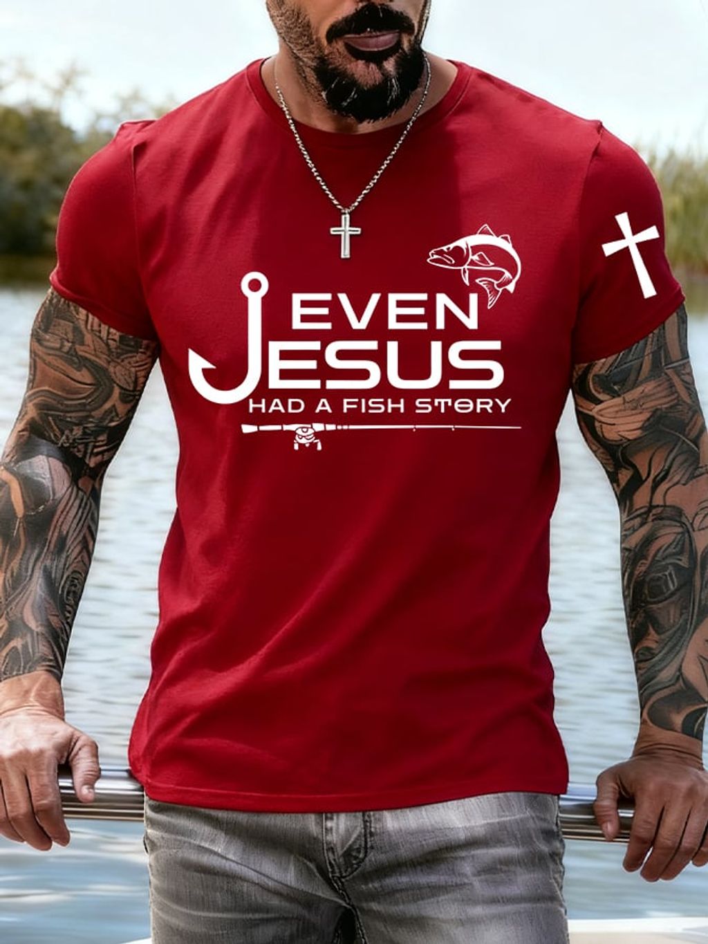 Men's Jesus Also Told The Story Of The Fish Printed T-Shirt