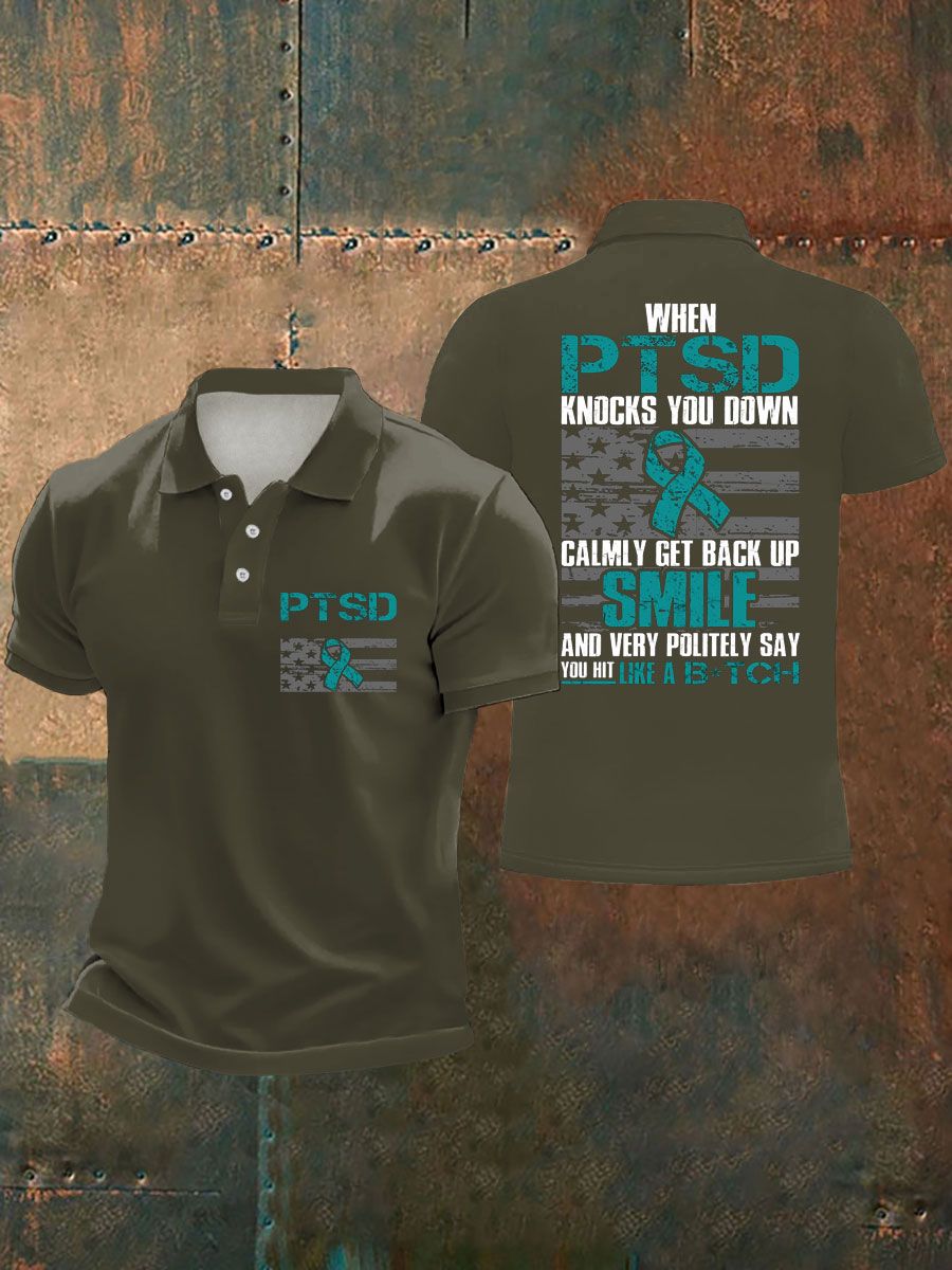 Men's PTSD Awareness Veteran Printed Casual Tops