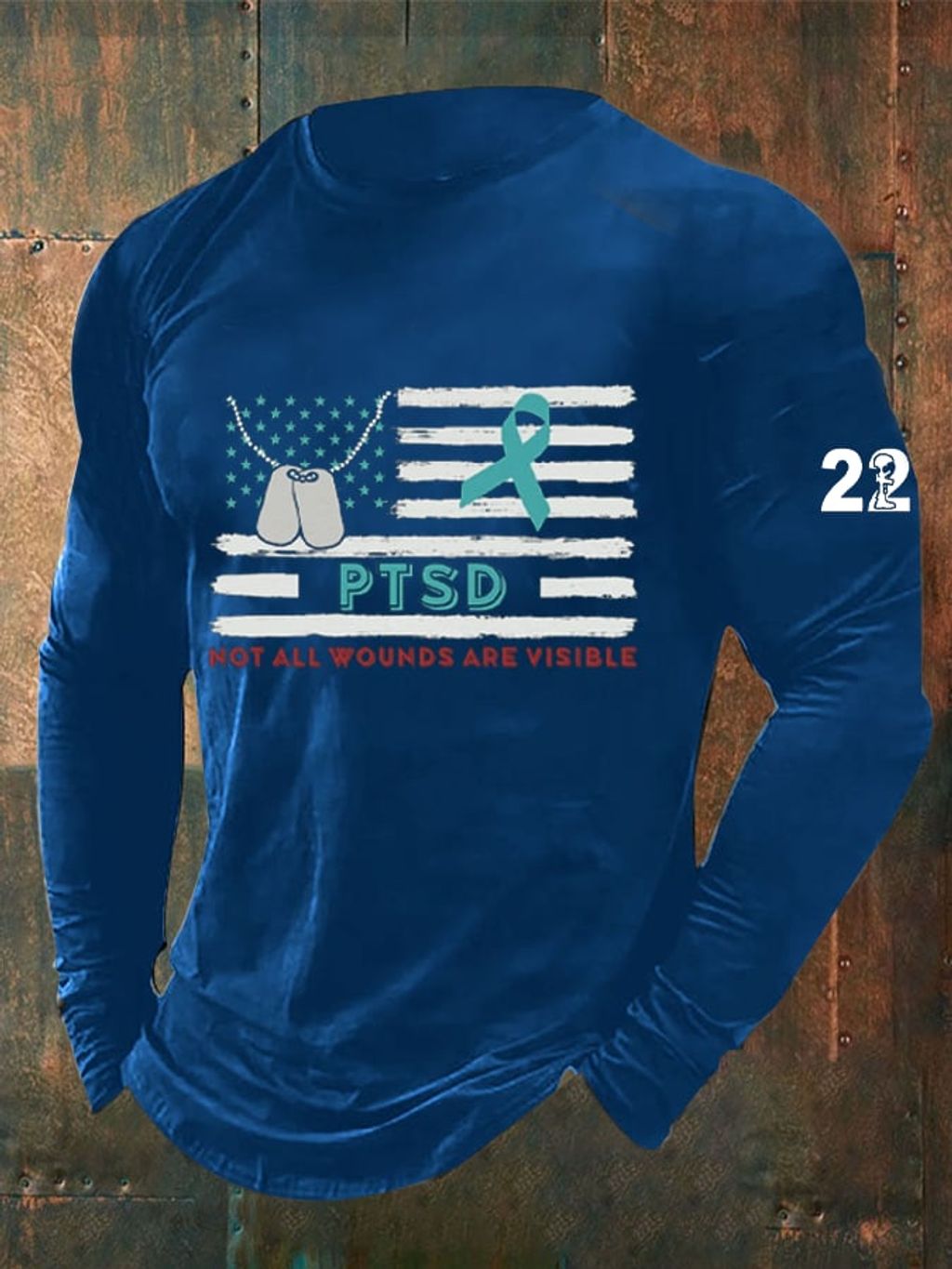 Men's Veteran PTSD Awareness Printed Long Sleeve Top