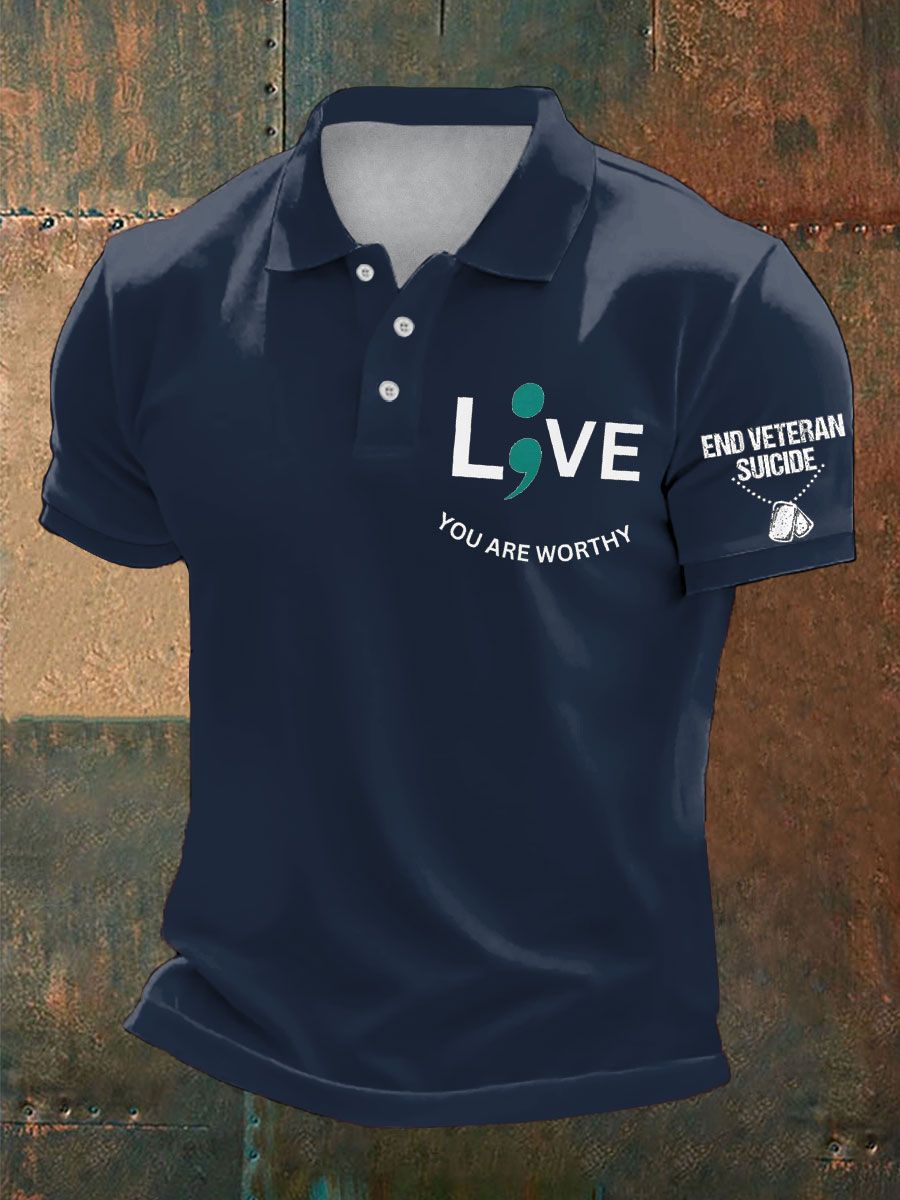 Men's Veteran Suicide Lives Matter Printed Casual Tops