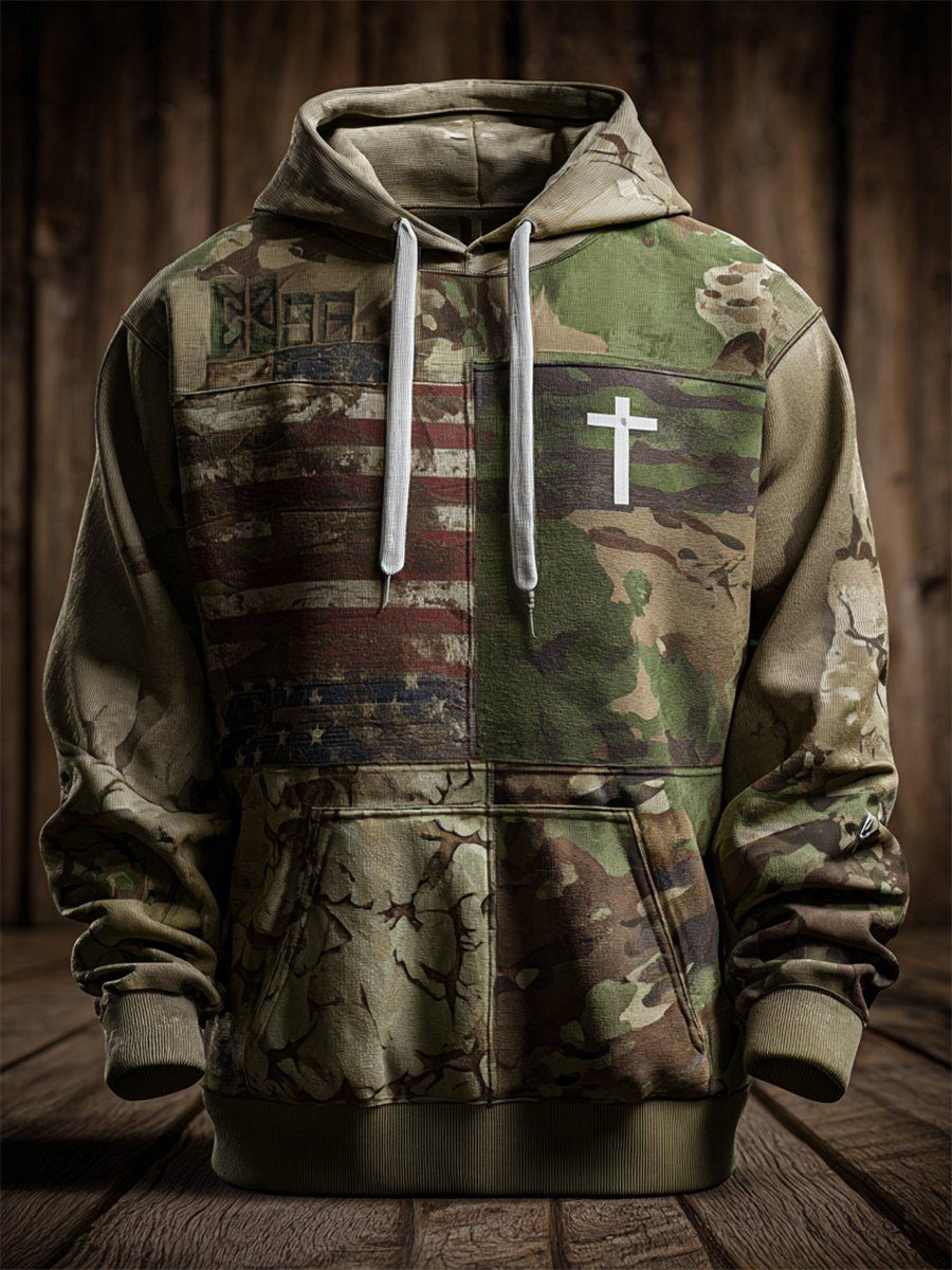 Men's Vintage Casual American Flag Cross Faith Hoodie