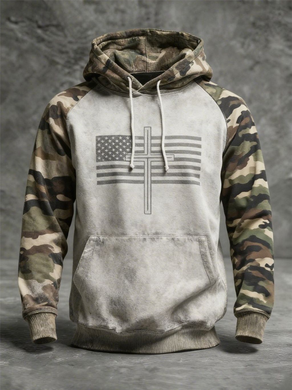 Men's Vintage Faith American Flag Camo Raglan Hoodie