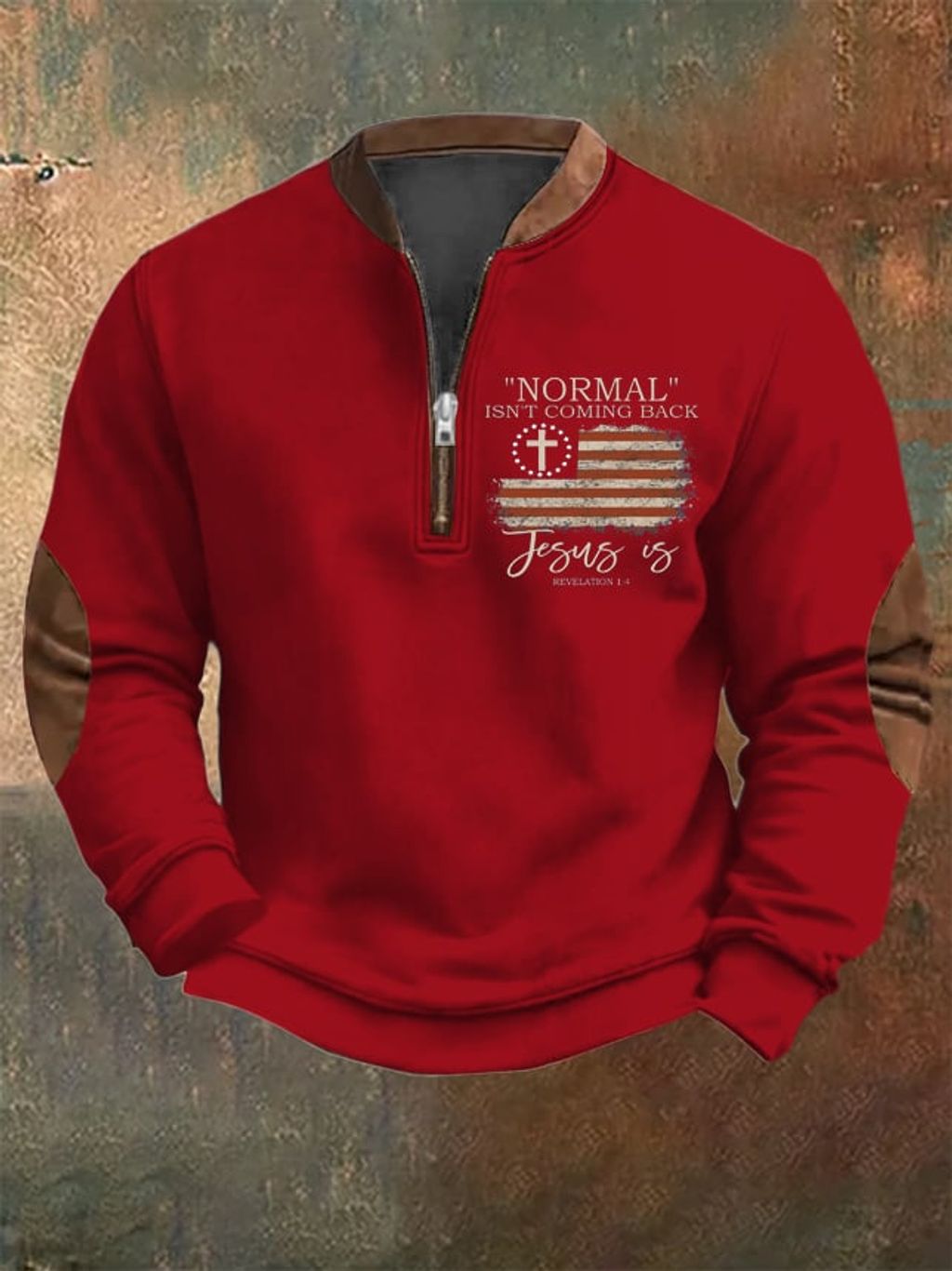 Men's Vintage Faith "Normal Isnt Coming Back" Printed Zip Collar Sweatshirt
