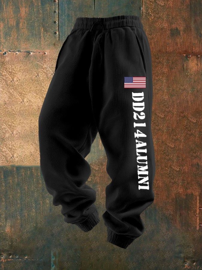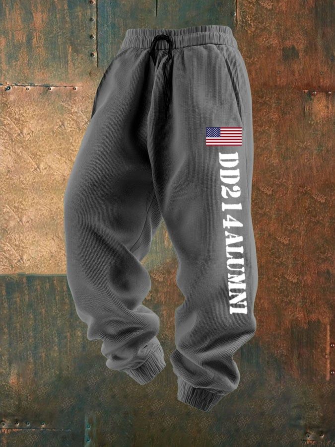 Men's Vintage Veteran Print Textured Casual Loose Sweatpants