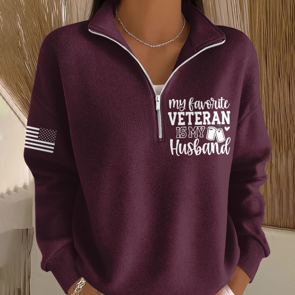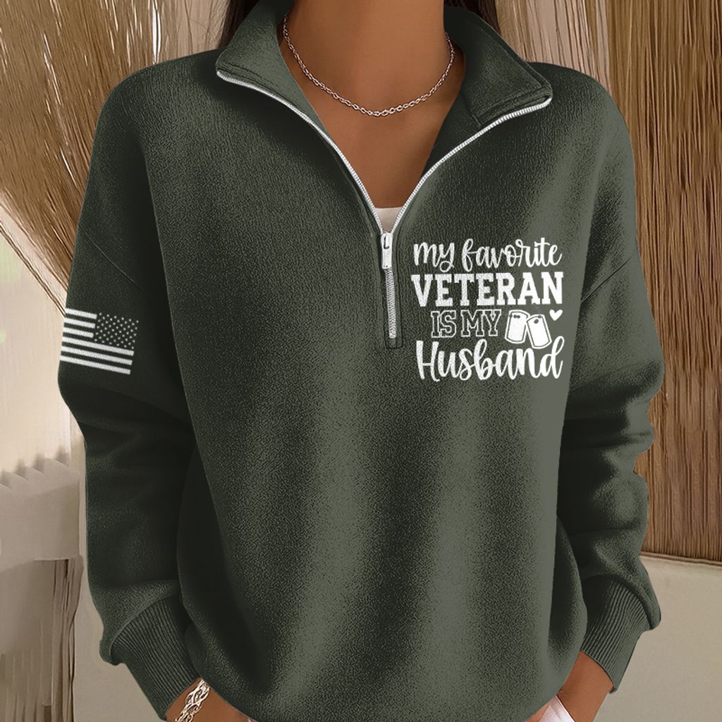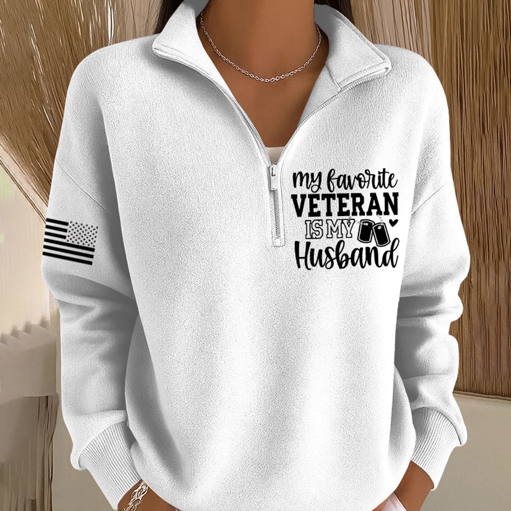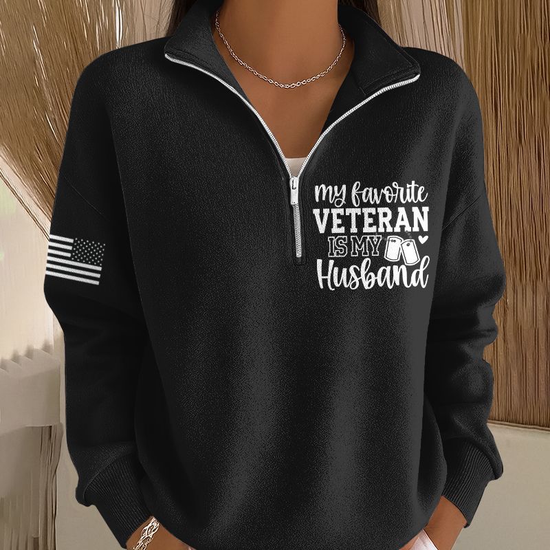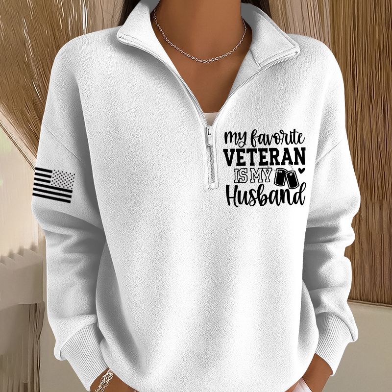 Women's My Favorite Veteran is My Husband Printed Casual Zip-Up Sweatshirt