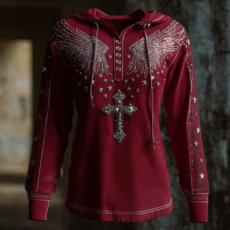 Patriot Faith Vintage Art Print Casual Hooded Henley