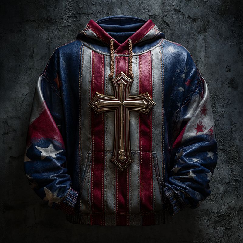 Patriot Vintage American Flag Faith Art Print Casual Hoodie
