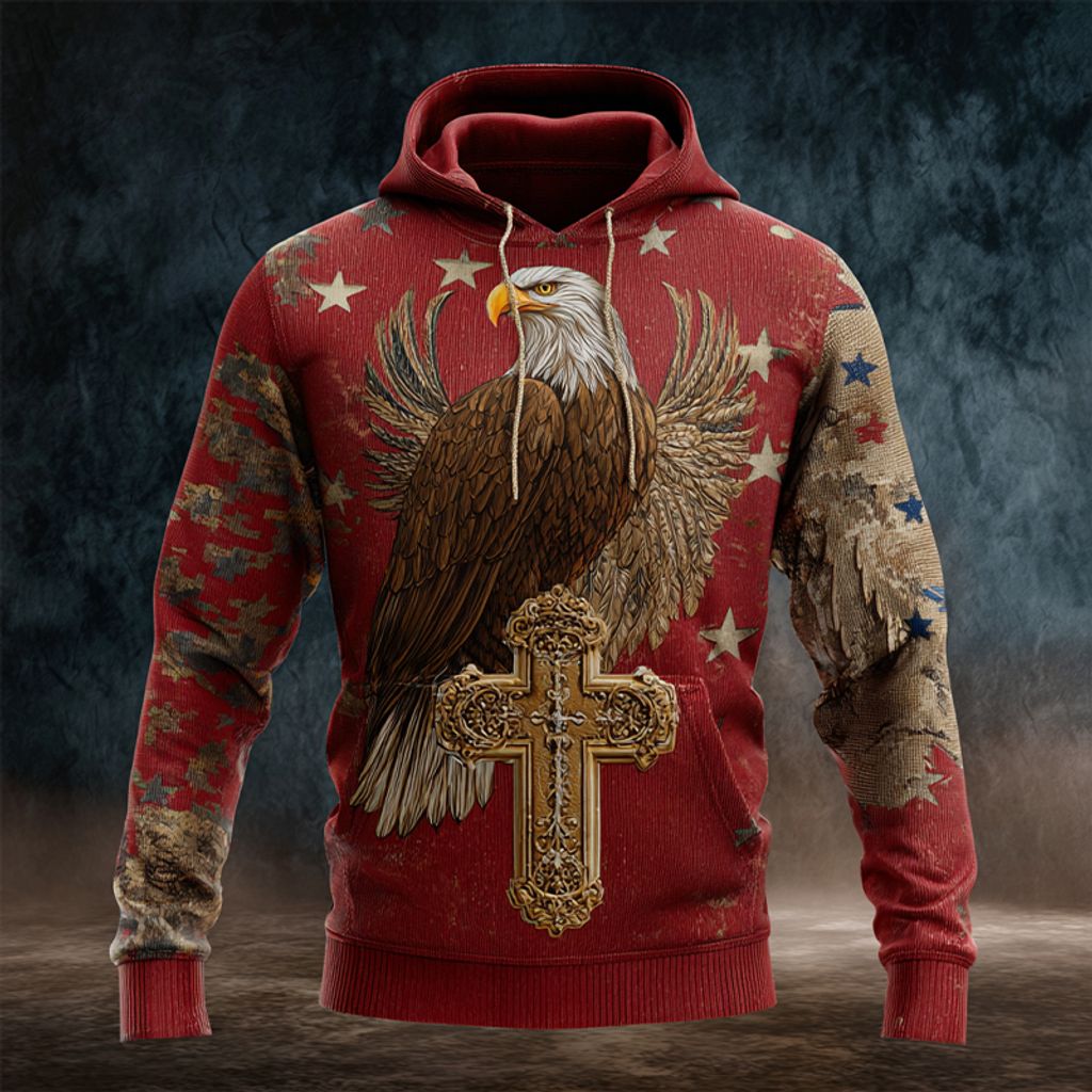Patriot Vintage American Flag Faith Art Print Casual Hoodie