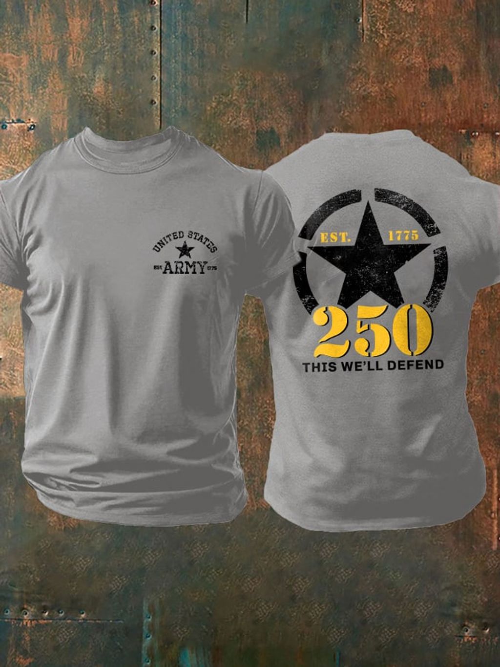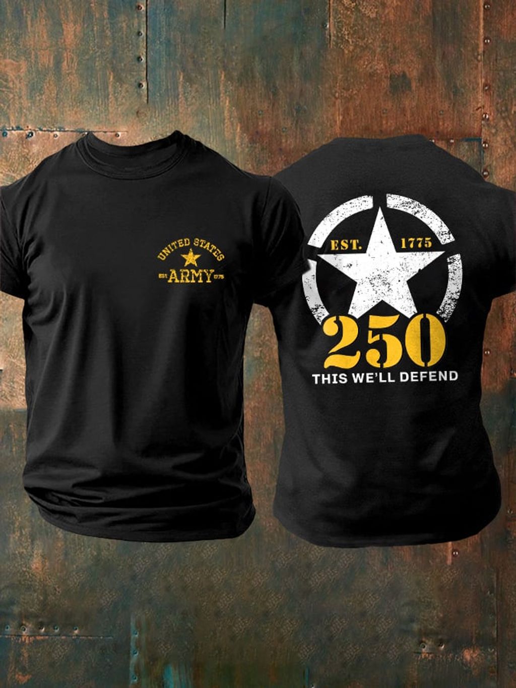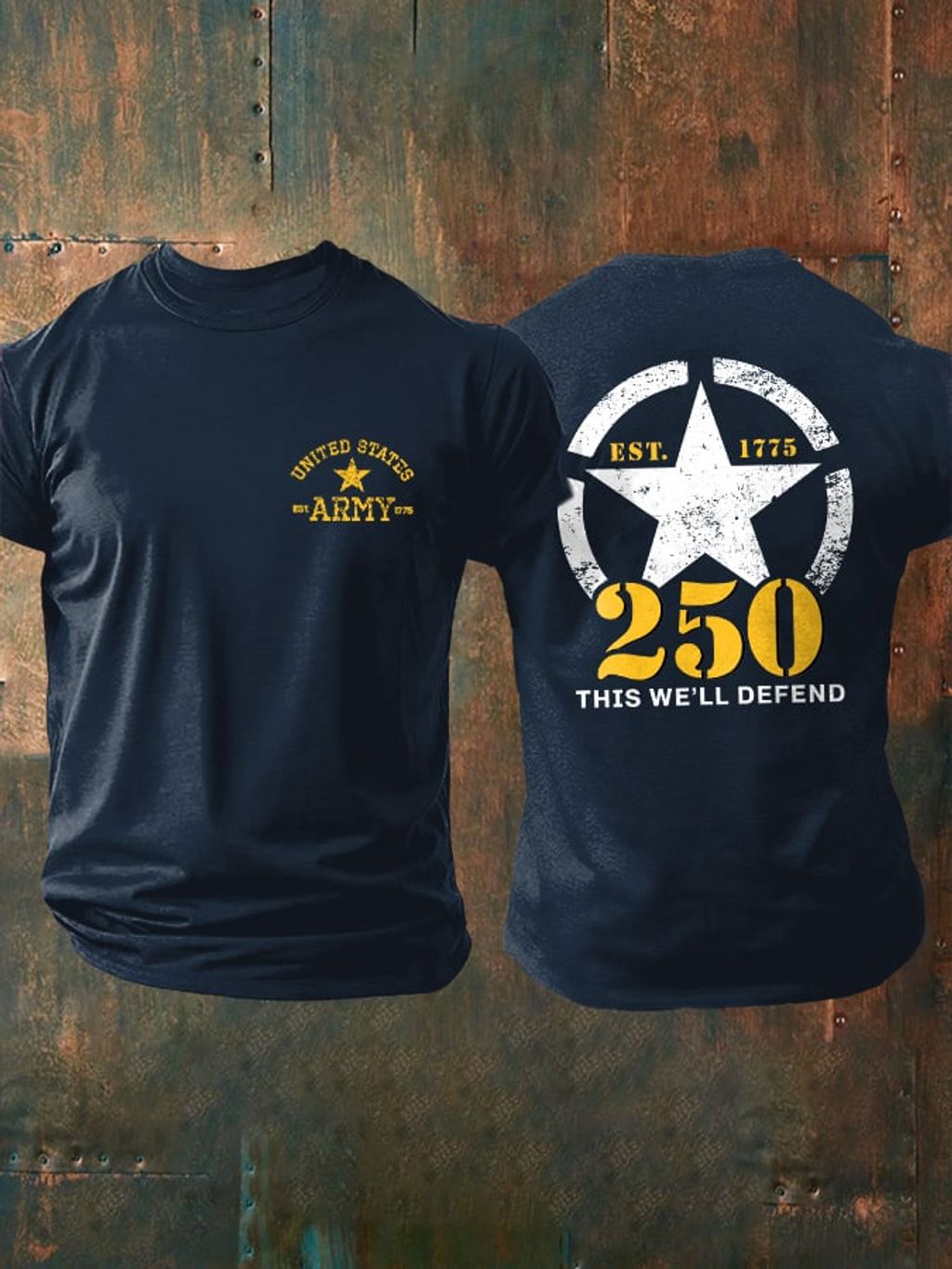 Retro Man's Vintage Independence Day United States Army 250th Anniversary This We'll Defend Print T-Shirt